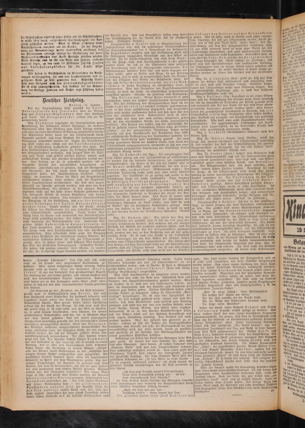 die grundsätzliche Duellfrage gehe er nach den früheren Reichstagsbeschlüssen nicht ein.