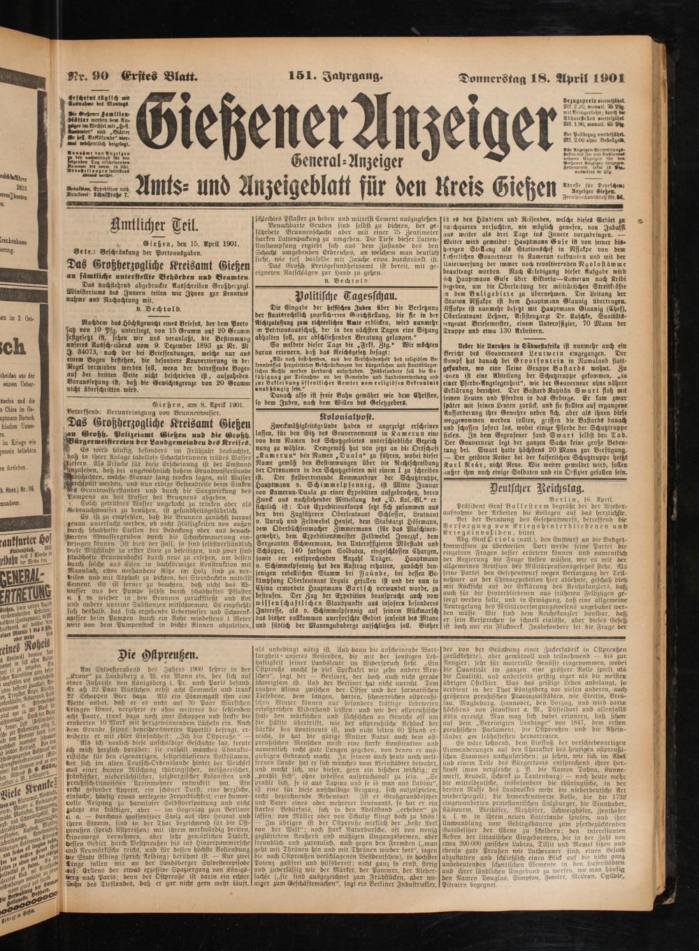 Donnerstag 18. April 1901