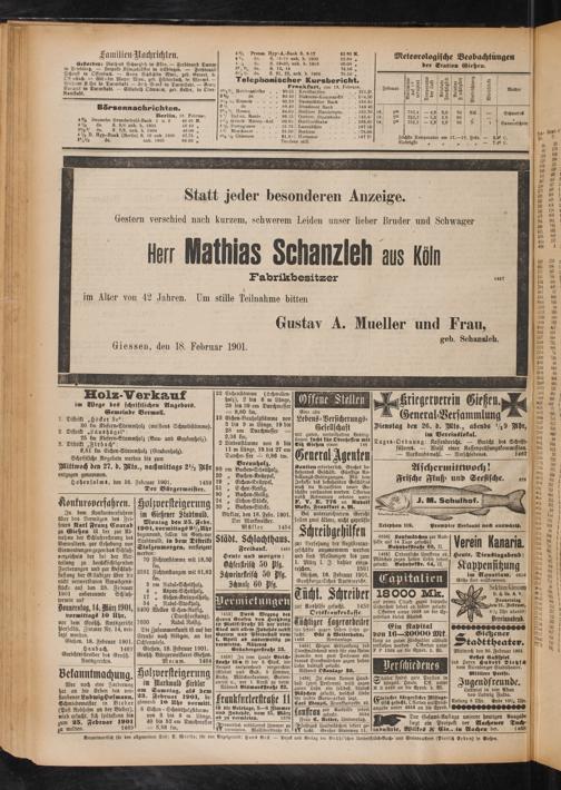 Verantwortlich für den allgemeinen Teil: P. öittlo; für den Anzeigenteil: Han« veck. — Druck und Verlag der Brühl'schen Univerfität-.vuch. und Eteindruckerei (Pietsch (Erben) in Gießen.