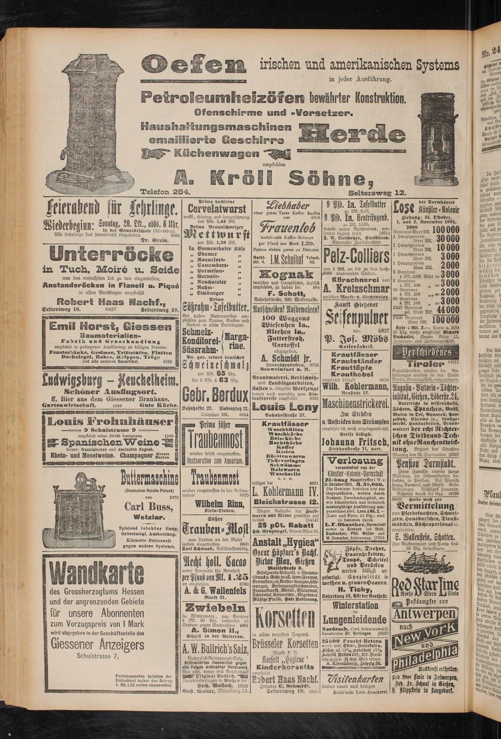 Telefon 284. Seltersweg 12.