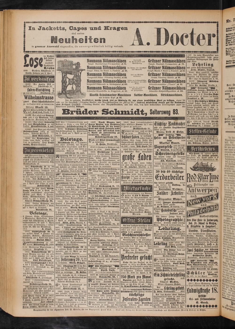 Gießen, den 21. März 1901. Mecum, Bürgermeister.