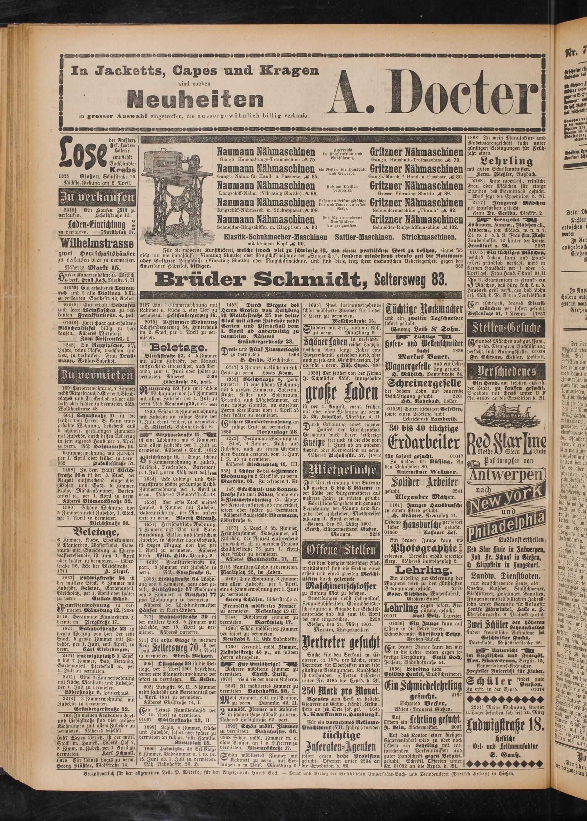 verantwortlich für den allgemeinen Teil: P. Witiko; für den Anzeigenteil: HanS «eck. — Druck und «erlag der Brühl Ichen UnwersikätS-Buch. und Sleindruckerei (Pietsch Trben) in Gießen.