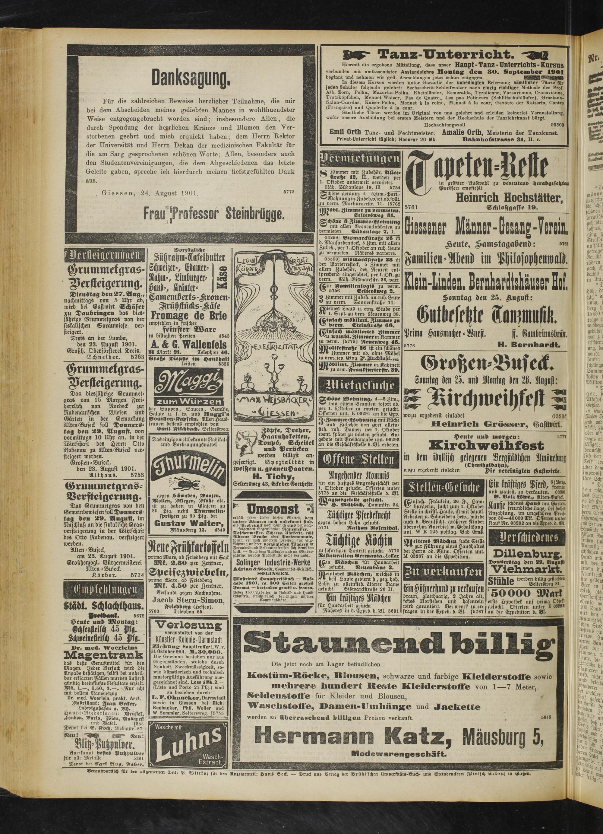 L. F. Ohnacker, Darmstadt sowie in Giessen bei Rich. Buchacker, Phil. Weiler und W. Semmler, Seltersweg. [5755