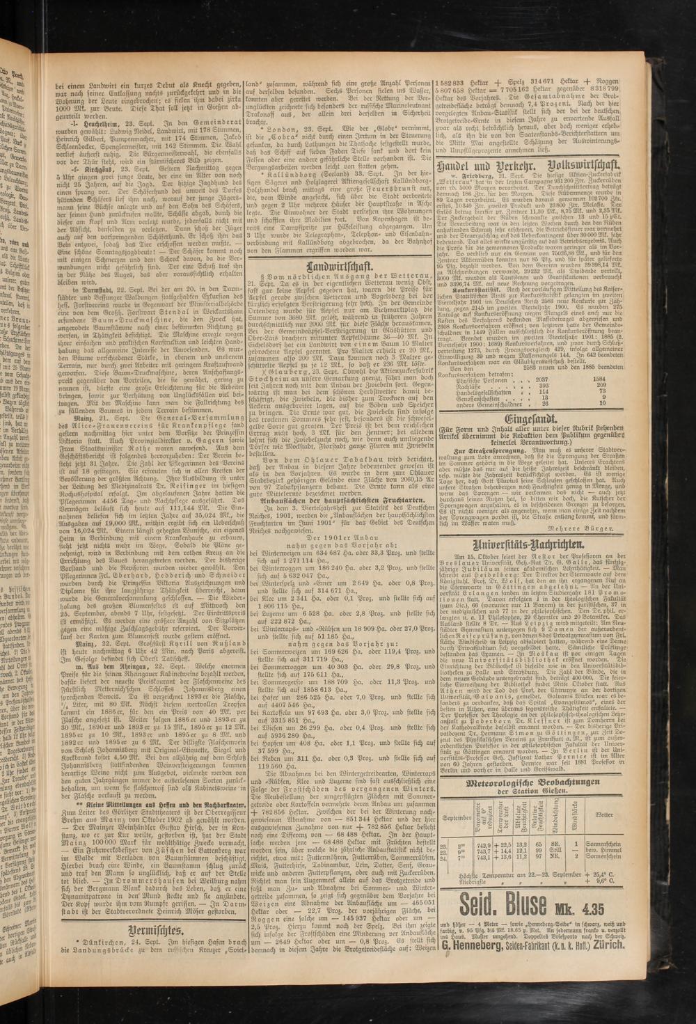 unb höher — 4 Meter — sowie „Henneberg-Seide" in schwarz, weiß und farbig, v. 95 Psg. bis Mk. 18.65 p. Met. An jedermann franko u. verzollt ins Haus. Muster umgehend. Doppeltes Briefporto nach der Schweiz. G. Henneberg, Seiden-Fabrikant (U k. Holl.) Zürich.
