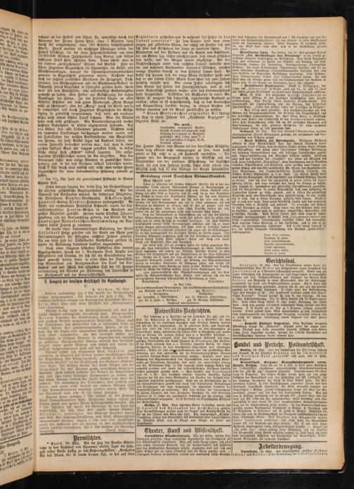 Heute morgen begann der dritte Tag der Verhandlungen. Es wurden geschäftliche Angelegenheiten erledigt. Bei der Neuwahl des Vorstandes wurden die bisherigen Mitglieder, die Professoren Pietzker-Nordhausen, Scholten-Halle, Hamdorf- Guben, P r e S l e r - Hannover wiedergewählt. An Stelle des verstorbenen Professors Schwalbe wurde der Universitätsprofessor Hansen-Gießen in bett Vorstand mit großer Majorität gewählt. Ferner wurde Direktor Th aer- Hamburg von der Versammlung gebeten, den Verein bei der Hamburger Naturforscher-Versammlung im September dieses Jahres zu vertreten.