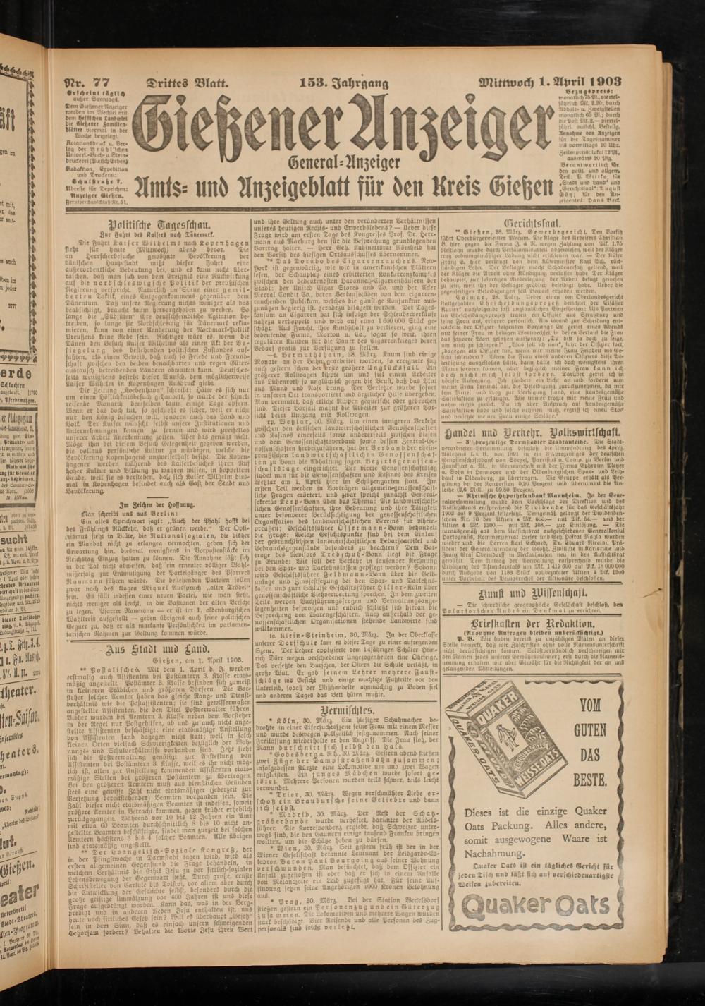 Gießen, am 1. April 1903.