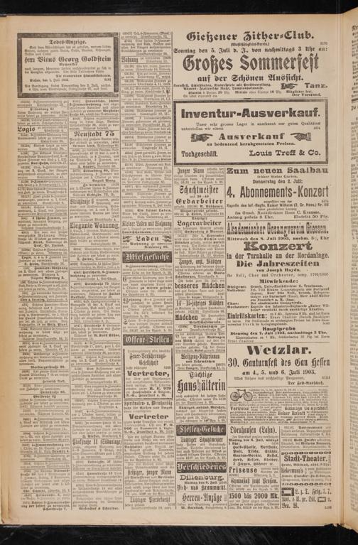 Dienstag den 7. Juli 1903, nachmittags 5 Uhu