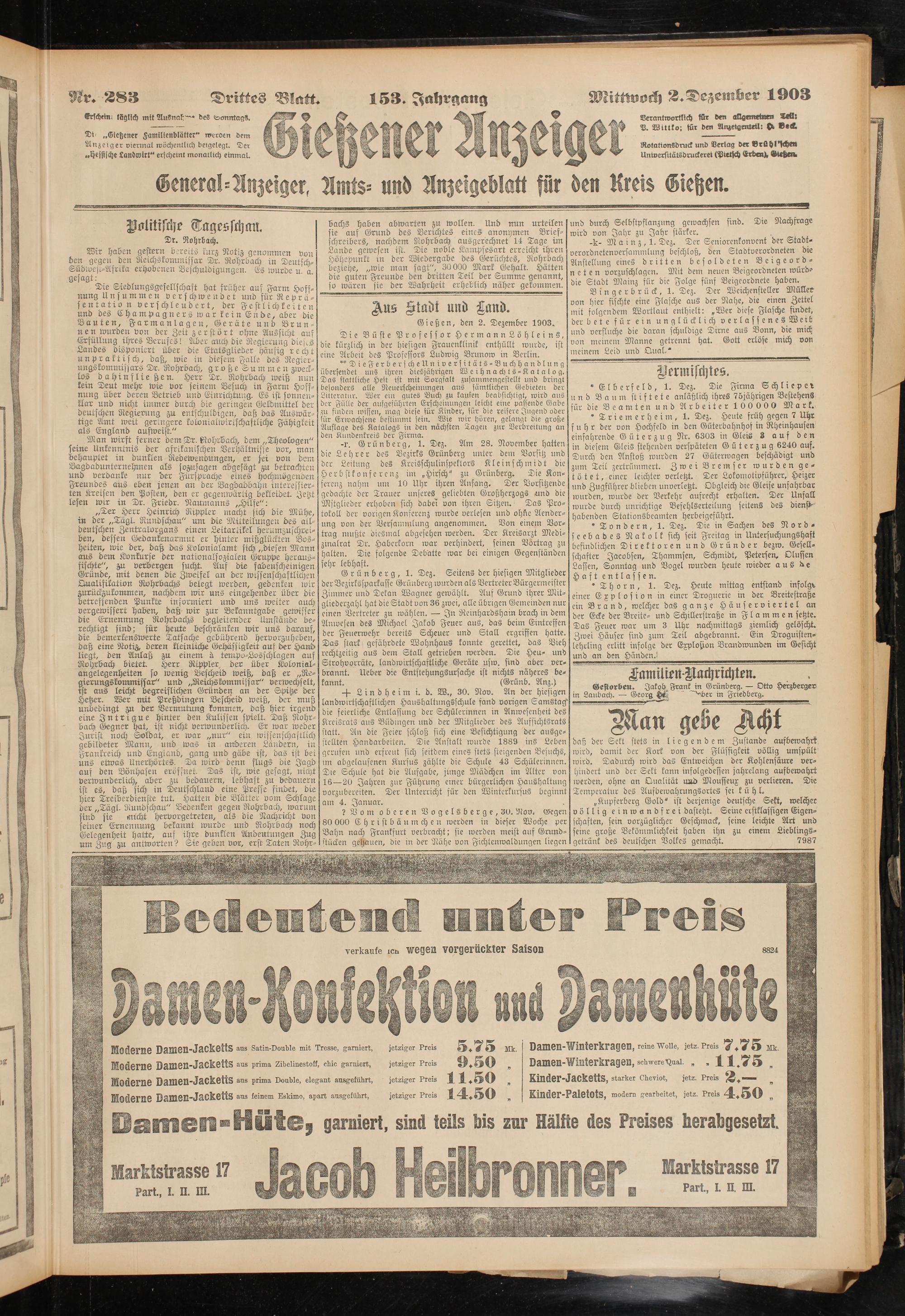 Gießen, den 2. Dezember 1903.