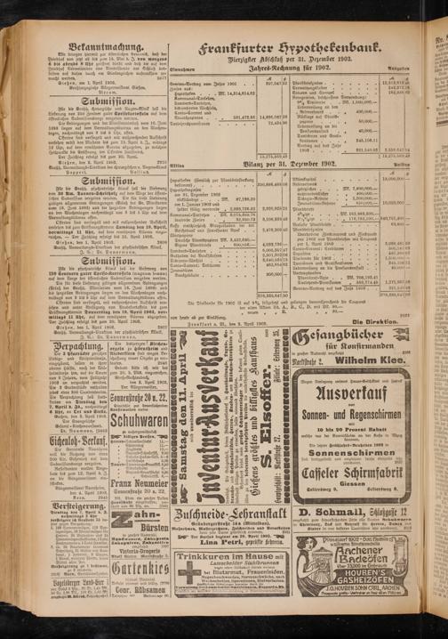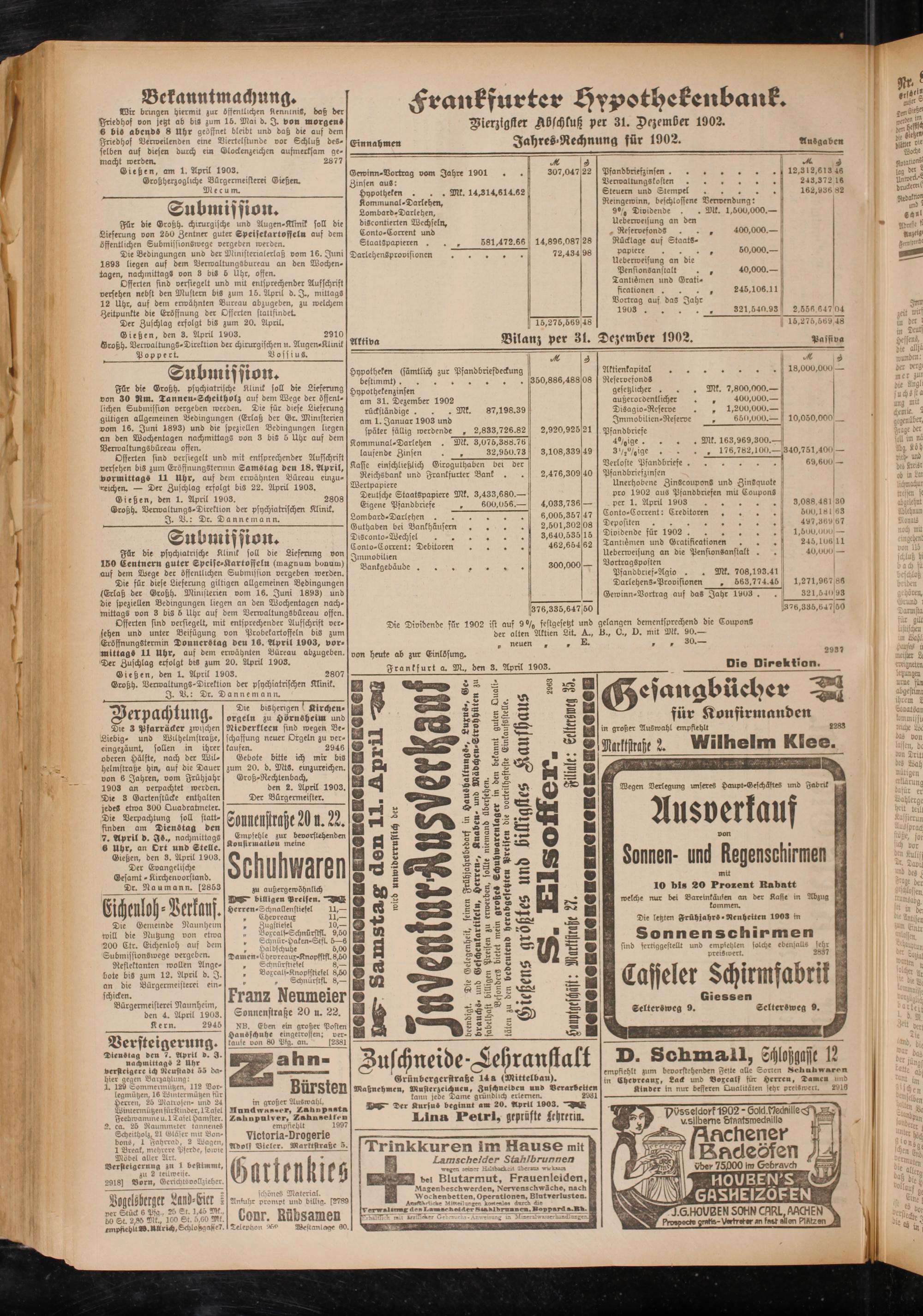 Unerhobene ZinScouponS und ZinSquote pro 1902 auS Pfandbriefen mit Coupons per 1. April 1903 ....