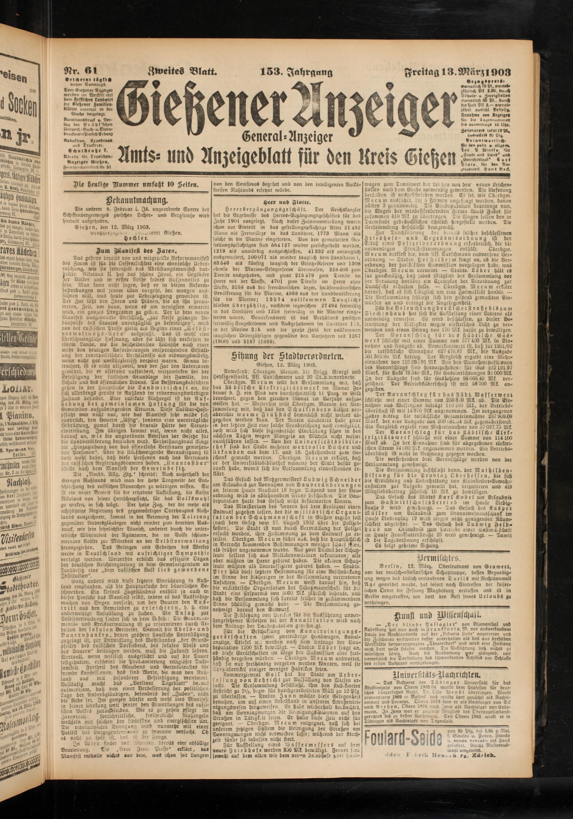Anwesend: Cberbgm. Mecum, die Lcigg. Georgi und Heyligenstaedt, Ass. Curschmann und 20 Stadtverordnete.