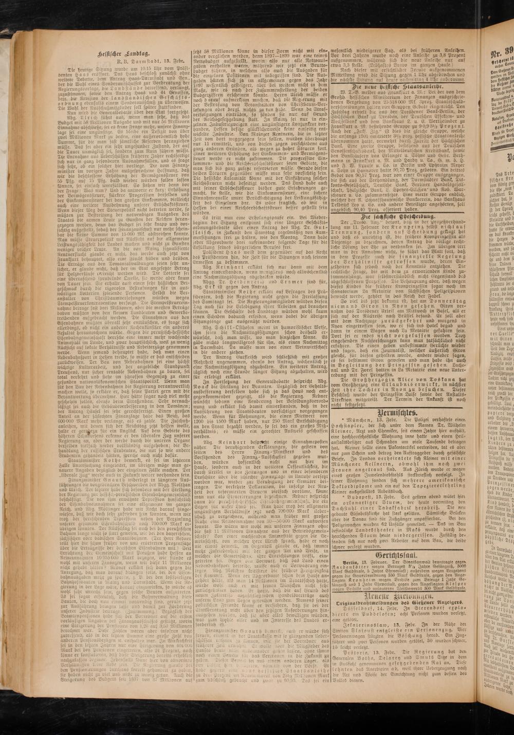 Abg. Ulrich führt aus, wenn man sehe, daü das Budget mit 58 Millionen Ausgabe und mit nur 56 Millionen Einnahme abschließe, sei es keine Frage mehr, unsere Finanzlage sei eine ungünstige. Es bleibe ein Defizit von über zwei Millionen Mark zu decken, eine außerordentlich hohe Summe, für die man fast sämtliche Reserven heranziehen müsse. Das sei aber ein sehr ungesunder Zustand, der auf die Tauer unmöglich sei, sondern zum Ruin führen müsse. Die Entnahme aus Uebcrschüssen früherer Jahre rechtfertige sich nur in ganz besonderen Ausnahmefällen, und es frage sich sehr, ob ein solcher hier vorliege. Die vom Finanz- Minister im vorigen Jahre ausgesprochene Hoffnung, daß wir die beschlossene Erhöhung der Vermögenssteuer von 55 Pfg. auf 75 Pfg. bald wieder würden fallen lassen können, sei einfach unerfüllbar. So stehen wir denn vor der Frage: Was nun? Und da antworte er kurz: Erhöhung der Vermögenssteuer, stärkere Progression derselben und der Einkommensteuer bei den großen Einkommen, vielleicht auch eine weitere Ausdehnung unserer Erbschaftssteuer. Menn dieser Weg der Steuerpolitik nicht betreten werde, so müßten zur Bestreitung der notwendigen Ausgaben des Staates die armen Leute zu Gunsten der Reichen herangezogen werden, denn das Budget sei sehr knapp und vorsichtig ausgestellt, sodaß der Finanzausschuß nur mehr scheinbar die kleine Summe von 15 000 Mk. abstreichen konnte. Man müsse Steuerpolitik mit Rücksicht auf die allgemeine Leistungsfähigkeit des Landes machen und nicht zu Gunsten weniger reicher Leute. An die von Mainz signalisierte Rentnerflucht glaube er nicht, das werde auch jetzt von Frankfurt behauptet, also eine Flucht hüben und drüben. Tie Erträge aus den Domanialwaldungen seien sehr unsicher, er glaube nicht, daß der im Etat angesetzte Betrag für Holzverläufe » erreicht werden wird. Tie Lotterie sei eine überraschend sprudelnde Quelle, sie werde aber kaum von Tauer jein. Sie erhalte aum einen sehr häßlichen Beigeschmack durch die rigorosen Bestrafungen für in auswärtigen Lotterien spielende Personen. Selbst die Veranstalter von Ehristbaumverlosungen würden wegen Stenipelsteuerkontravention verfolgt. Tie Stempelsteuereinnahme betrage fast drei Millionen, aber die meisten Beträge davon müßten von den kleinen Landleuten und Gewerbetreibenden aufgebracht werden. Die Einnahmen aus den Eisenbahnen müßten überall sehr enttäuschen, es frage sich allerdings, ob nicht ein anderer Rechenkünstler ein anderes Resultat herausrechnen würde. Gegen die preußisch-hessische Eisenbahngemelnschaft herrsche eine immer mehr wachsende Animosirät im Lande, und zwar hauptsächlich, weil zu wenig Rücksicht auf lokale Verhältnisse und Arbeiterzüge genommen werde. Menn jemand behauptet habe, daß man einen Nebenbahnsport in Hessen treibe, so müsse er das entschieden zurückweisen. Ter Bau von Nebenbahnen sei eine höchst wichtige Kulturarbeit, und der angebliche Standpunkt Preußens, nur sicher rentable Nebenbahnen zu bauen, sei total verkehrt und stehe im schroffen Gegensatz zu einer gesunden nationalökonomischen Staatspolitik. Wenn man für den Bau der Nebenbahnen die Regierung verantwortlich machen wolle, so erkläre er, daß seine Partei gern mit die Verantwortung übernehme. Hier hätte sogar noch viel mehr geschehen sollen, ebenso beim Straßenbau. Sehr vernachlässigt sei auch die Gebäudeverbesserung in den Domänen; der Antrag Häusel sei sehr gerechtfertigt. Einen großen Anteil an der schlechten Finanzlage habe das Reich, das 600 000 Mark mehr verlange, als es zahle. Die Zuschuß- anleihen, mit denen sich der Reichstag jetzt helfen wolle, halte er geradezu für ein Unglück. Auf dem Gebiete des höheren Schulwesens erkenne er den liberalen Zug unserer Regierung an, aber der werde durch die unteren Organe derselben vielfach wieder vollständig ausgehoben; die Behandlung der russischen Studenten, die nur so wie andere Studenten gehandelt hätten, spreche auch nicht dafür.