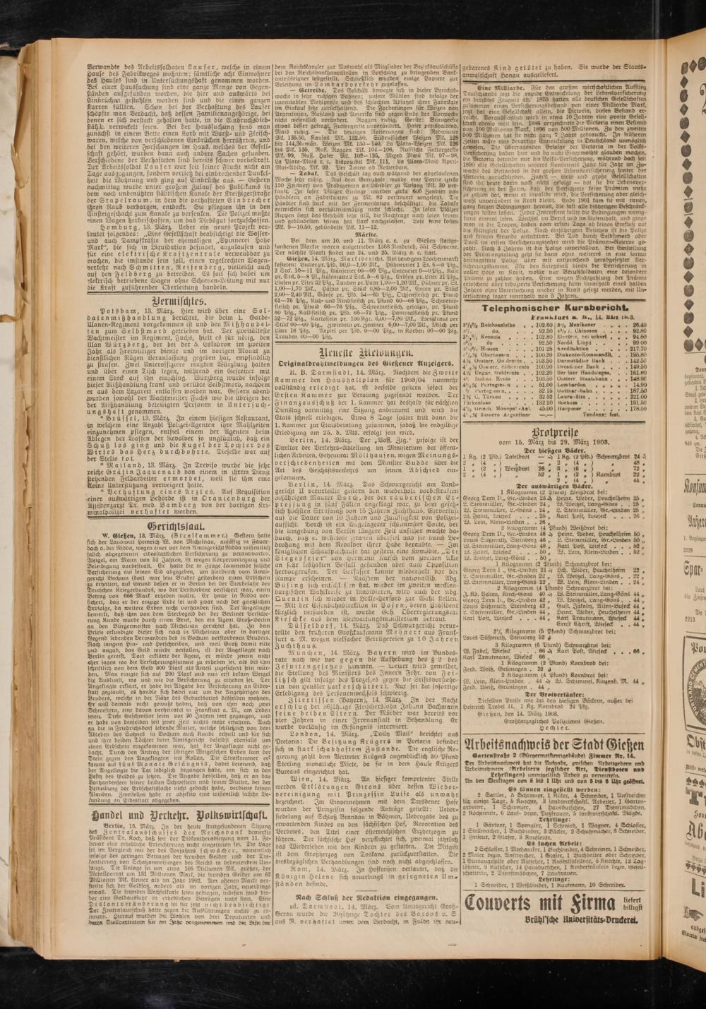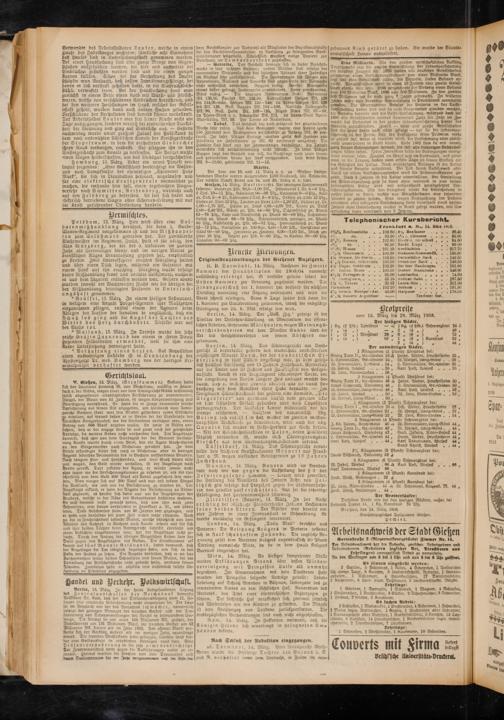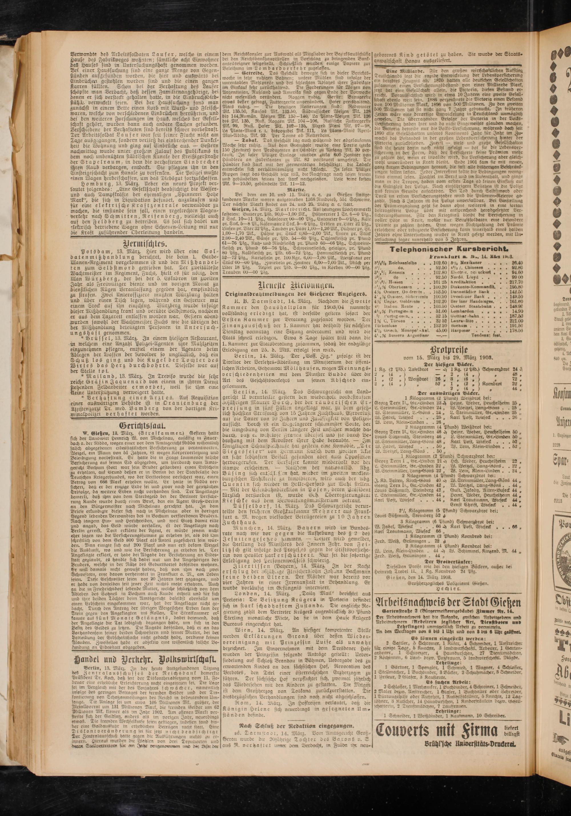 Bei dem am 10. und 11. März a. c. zu Gießen stattge- sundenen Markte waren ausgetrieben 1368 Rindvieh, ööl Schweine. Ter nächste Markt findet am 24. und 25. März a. c. statt.