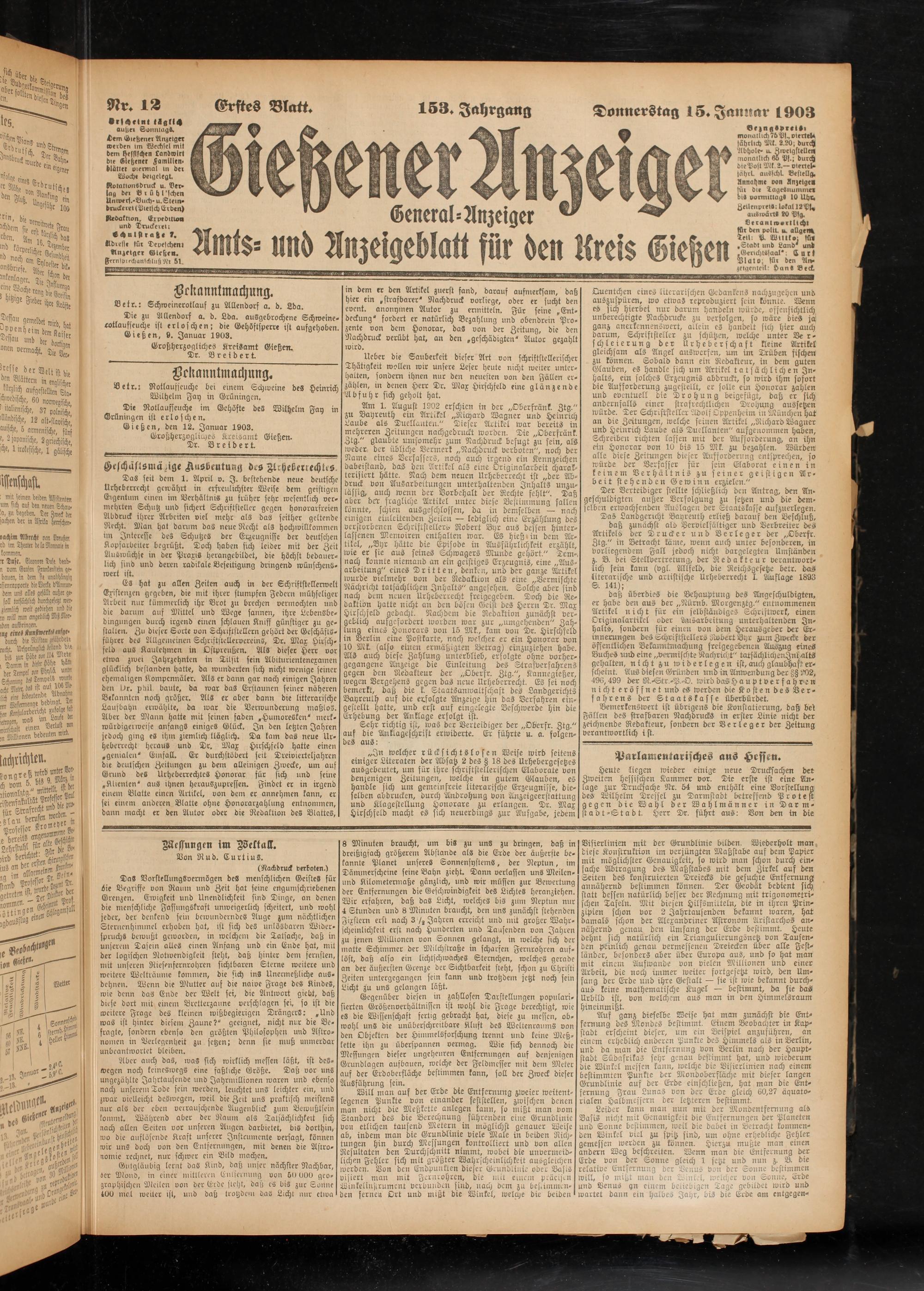 Gießen, den 12. Januar 1903.