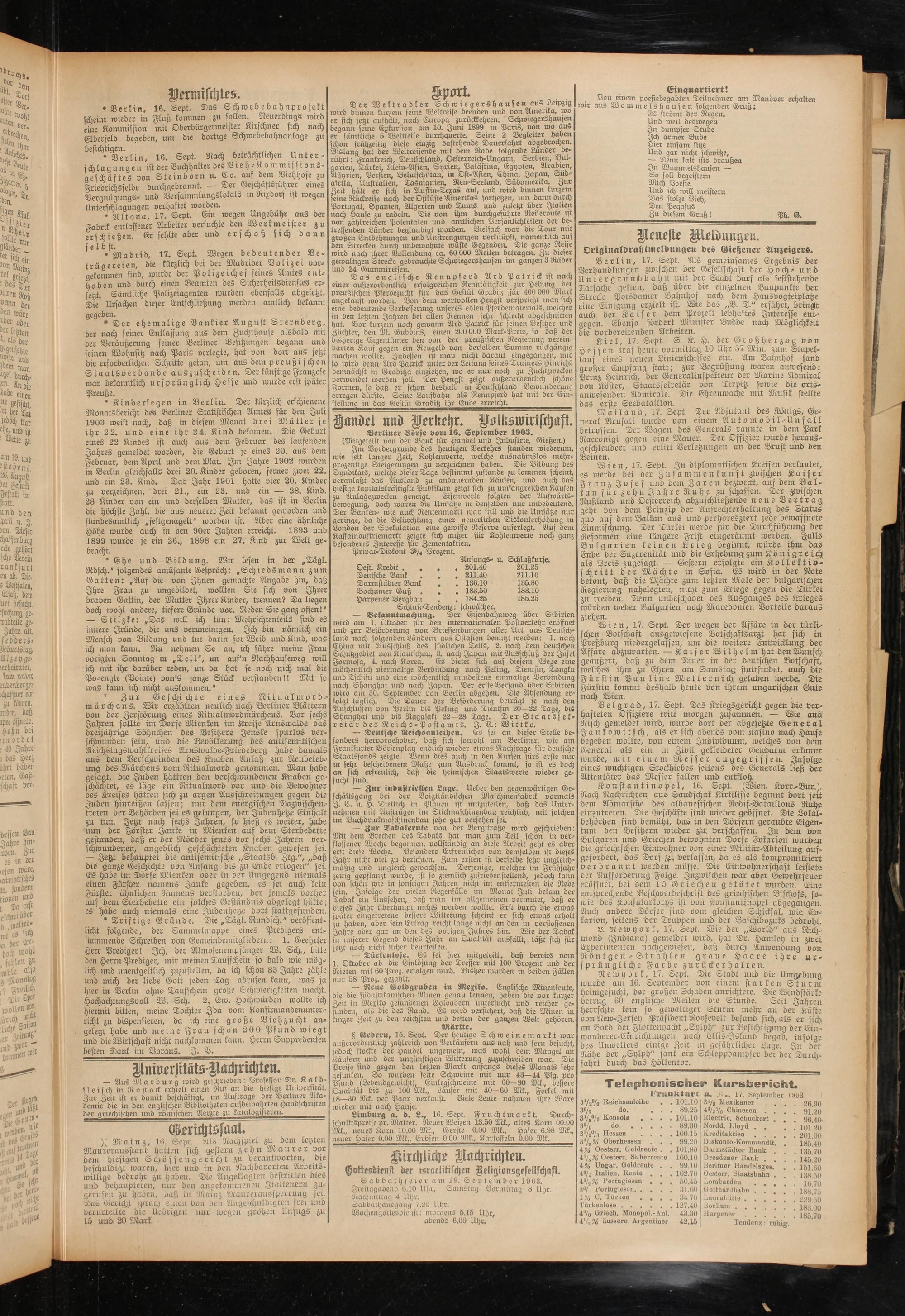 Berliner Börse vom 16. September 1903.