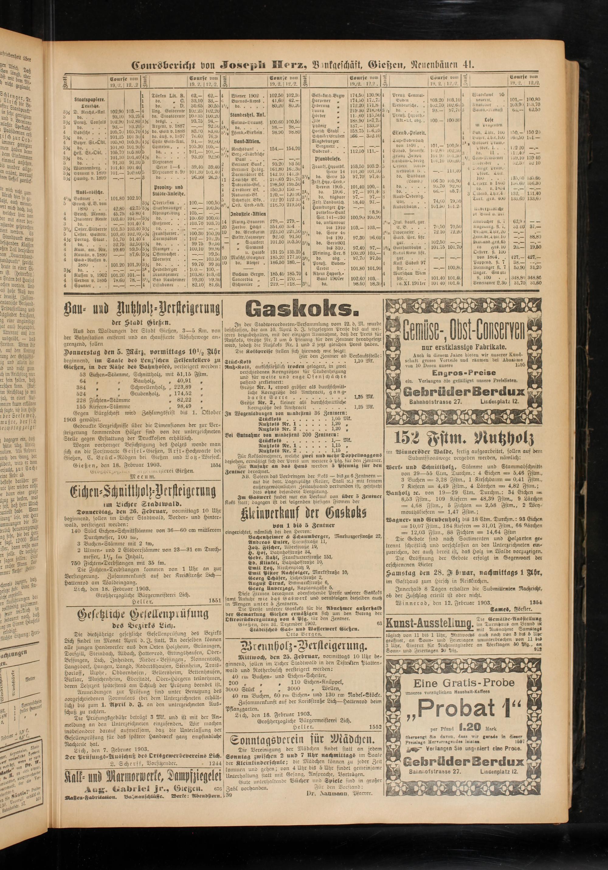 Coursbericht von Joseph Igprz, B mkqeschäst, Gießen, Neiirnlniueil 41._____________