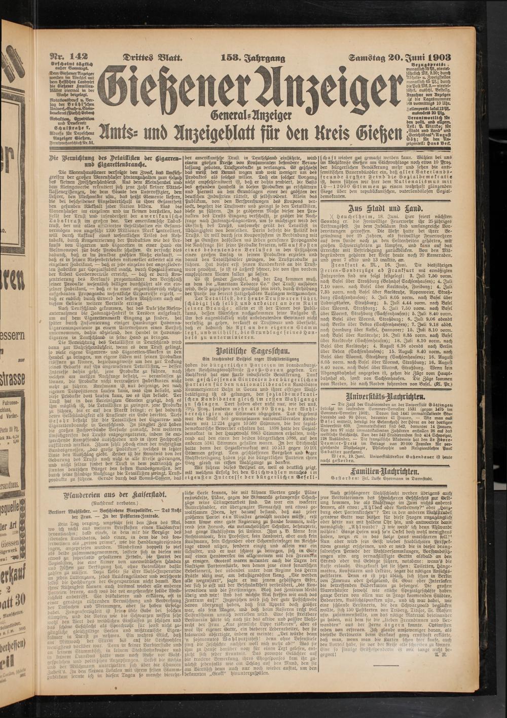 außer Sonntags. Dem Gießener Anzeiger werden im Wechsel mit dem Kesflschen Landwirt die Siebener Lamtlien. blätter viermal in der Woche betgelegt.