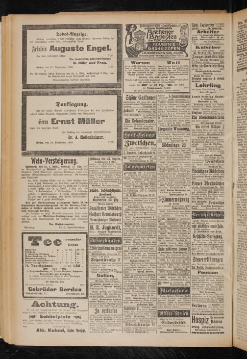 Im Anschluß an obige Wein-Versteigerung findet nachmittags noch eine Mobilien-Versteigerung statt, wobei eine sehr gute Scheibenbüchse mit Zubehör zum Ausgebot gelangt. 6915