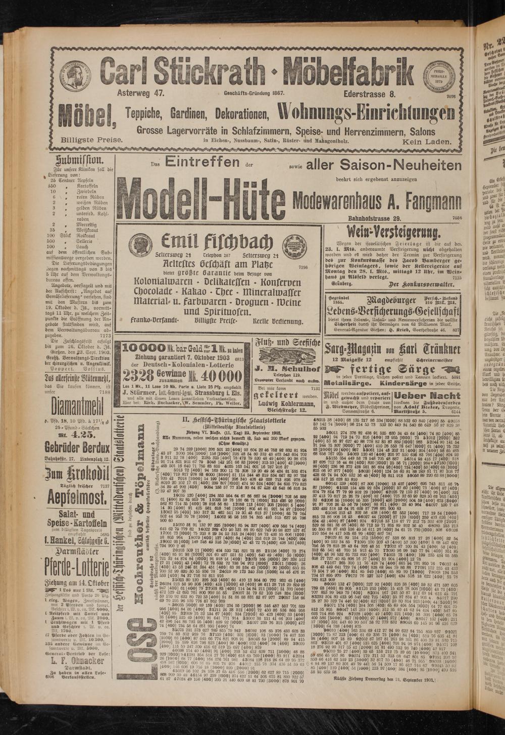 Nächste Ziehung Donnerstag den 24. September 1903.)