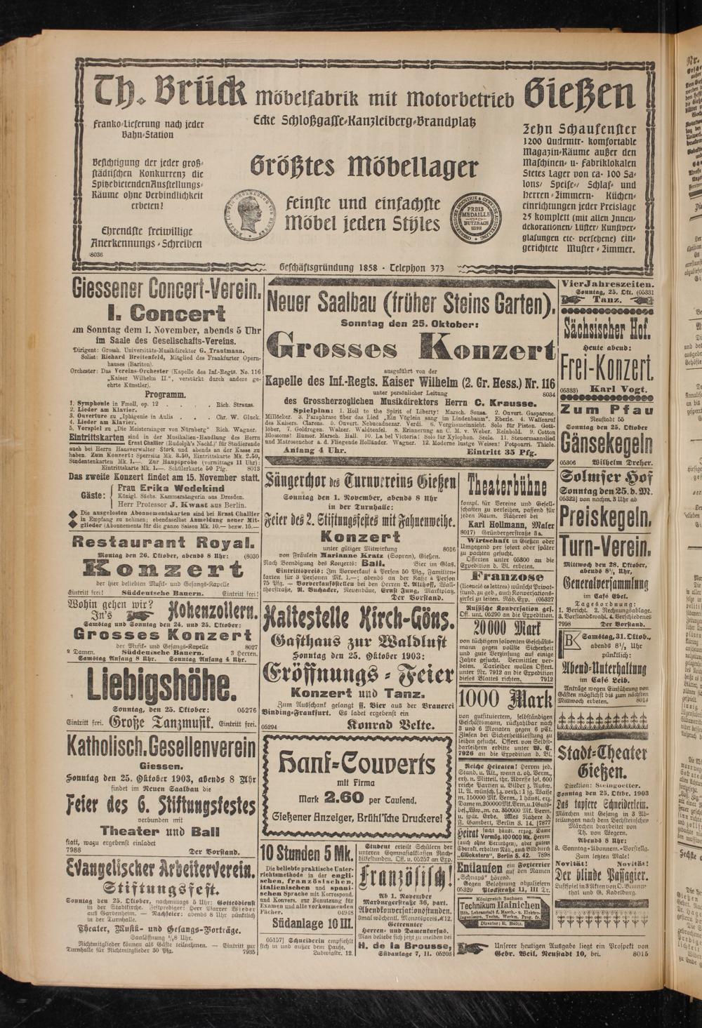 Sonntag den 25. HLtoK-r 1903, avends 8 Yyr