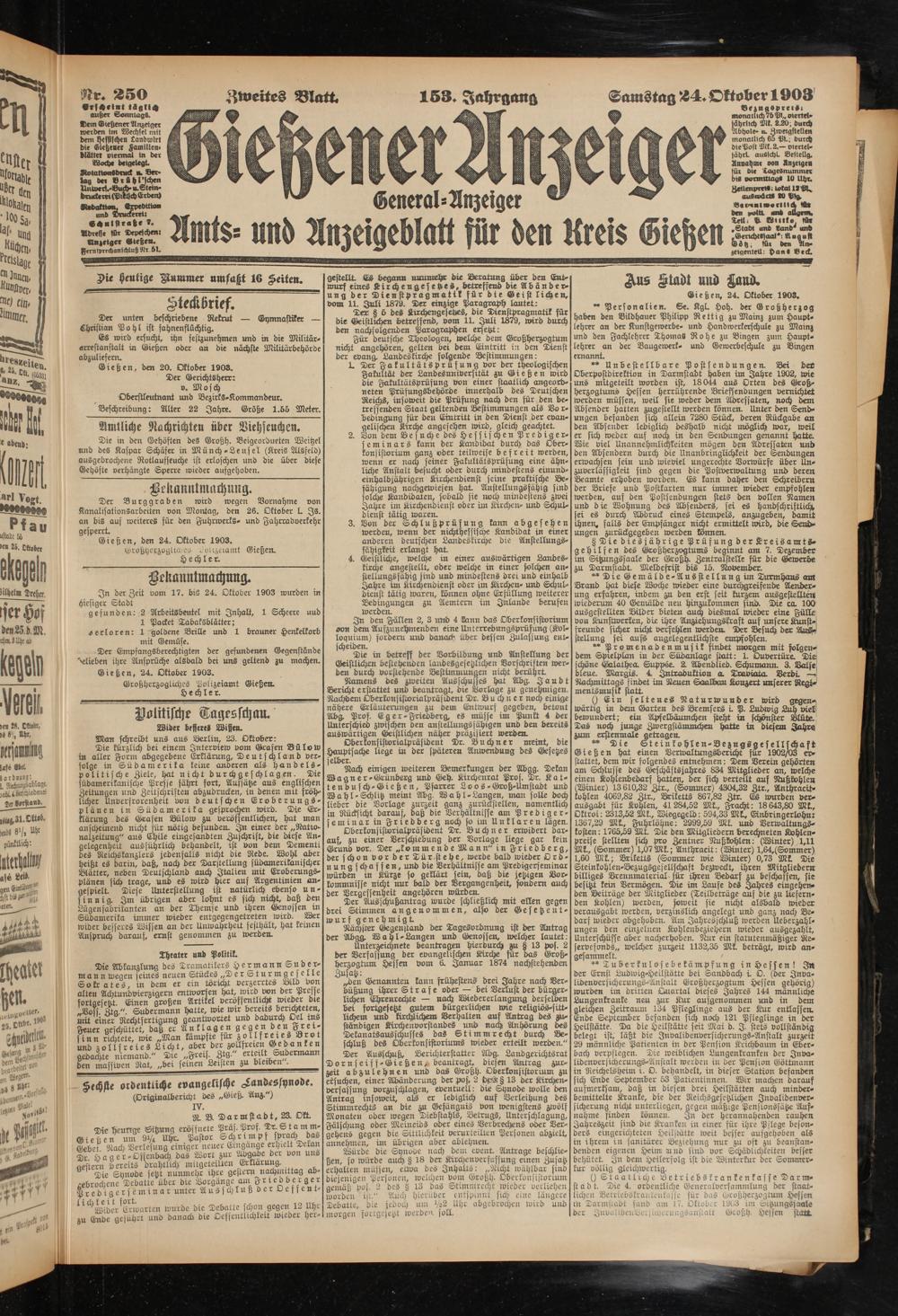 In der Zeit vom 17. bis 24. Oktober 1903 wurden in hiesiger Stadt