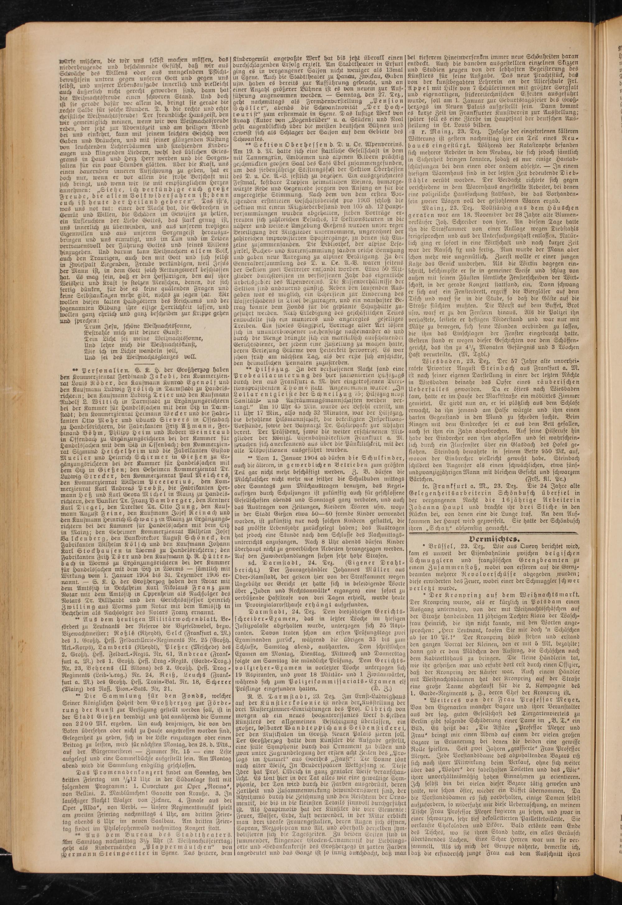 ** AuS dem heutigen Militärwochenblatt. Befördert zu Leutnants der Reserve die Vizefeldwetzel, bezw. Vizewachtmeister: NoßlL (Rheydt), Selck (Frankftill a. Nt.) des 3. Großh. Hess. Feldartillerie-Regiments 3lr. 25 (Großh. Art.-Korps), Lamberts (Rheydt), Pleßer (Meschede) des 2. Großh. Hess. Feldart.-Regts. 9lr. 61, Andreas (Frankfurt a. M.) des 1. Großh. Hess. Drag -Regts. (Garde-Drag.) Nr. 23, Behrens (II Altona) des 2. Großh. Hess. Drag - Regiments (Leitz-Drag.) 9lr. 24, Reiß, Leuchs (Frankfurt a. M.) des Großh. Hess. Train-Bat. Nr. 18, Scherer (Mainz) des Nass. Plon.-Bats. 3lr, 21.