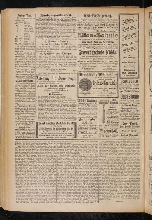 Die Ausnahme findet Samstag den 3. Oktober, morgens 10 Uhr statt. Anmeldungen nimmt an und nähere Auskunft erteilt L. Effloeser, Oberlchrerin, Gartenstrasie 30.