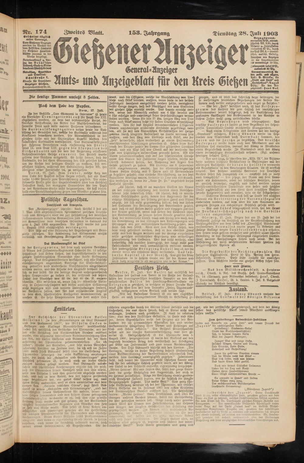 Dienstag 28. Juli 1903