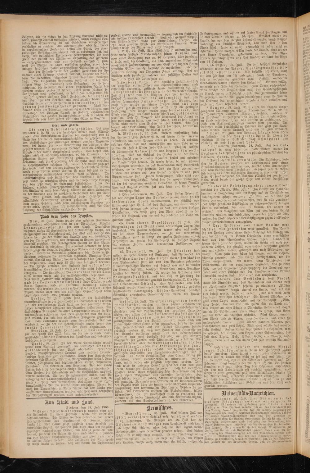Berlin, 28. Juli. Heute fand in der katholischen Garnisonskirche in der Hasenhaide ein feierliches Requiem für den verstorbenen Papst statt, an dem sämtliche katholischen dienstfreien Offiziere der Garnison teilnahmen. Die Katholischen Mannschaften aller Truppenteile waren in Paradeuniform erschienen. Vor dem Hochaltar war ein Katafalk erbaut, der mit den päpstlichen Insignien geschmückt war. Das Totenamt wurde vom Generalvikar Vollmar zelebriert. — In der St. Hedwigskirche wurde heute eine zweite trauer feier für den Papst abgehalten.