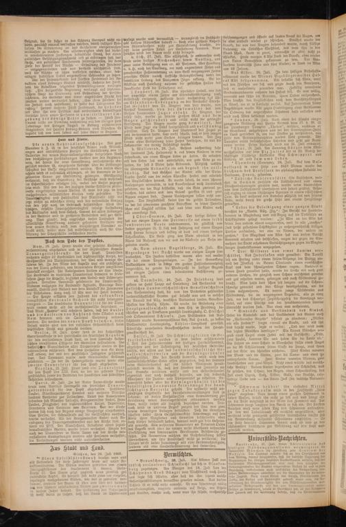 Breslau, 28. Juli. Heute fand eine Trauer feier für den Papst Leo XIII. statt, an der die gesamte Tom- geistlich feit, sowie die Vertreter der staatlichen und städtischen Behörden teilnahmen. _