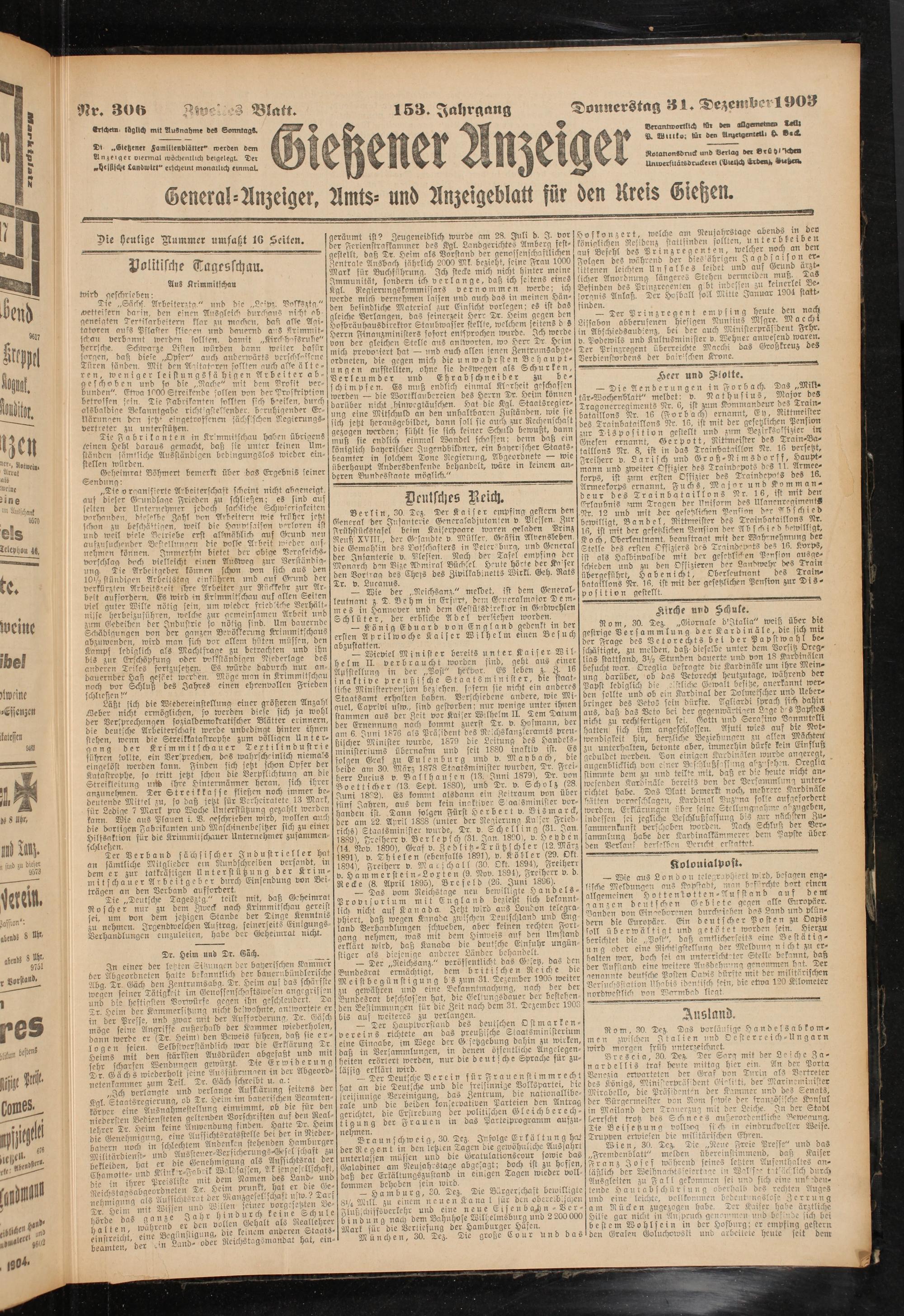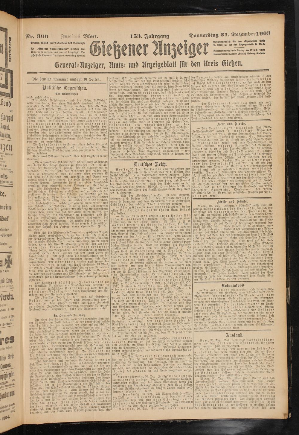 Donnerstag 31 De,zen-H'^ i 1)03
