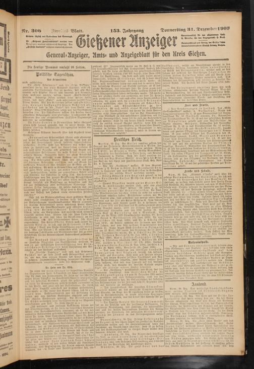 General-Anzeiger, Amts- und Anzeigeblatt für den Kreis Gießen.