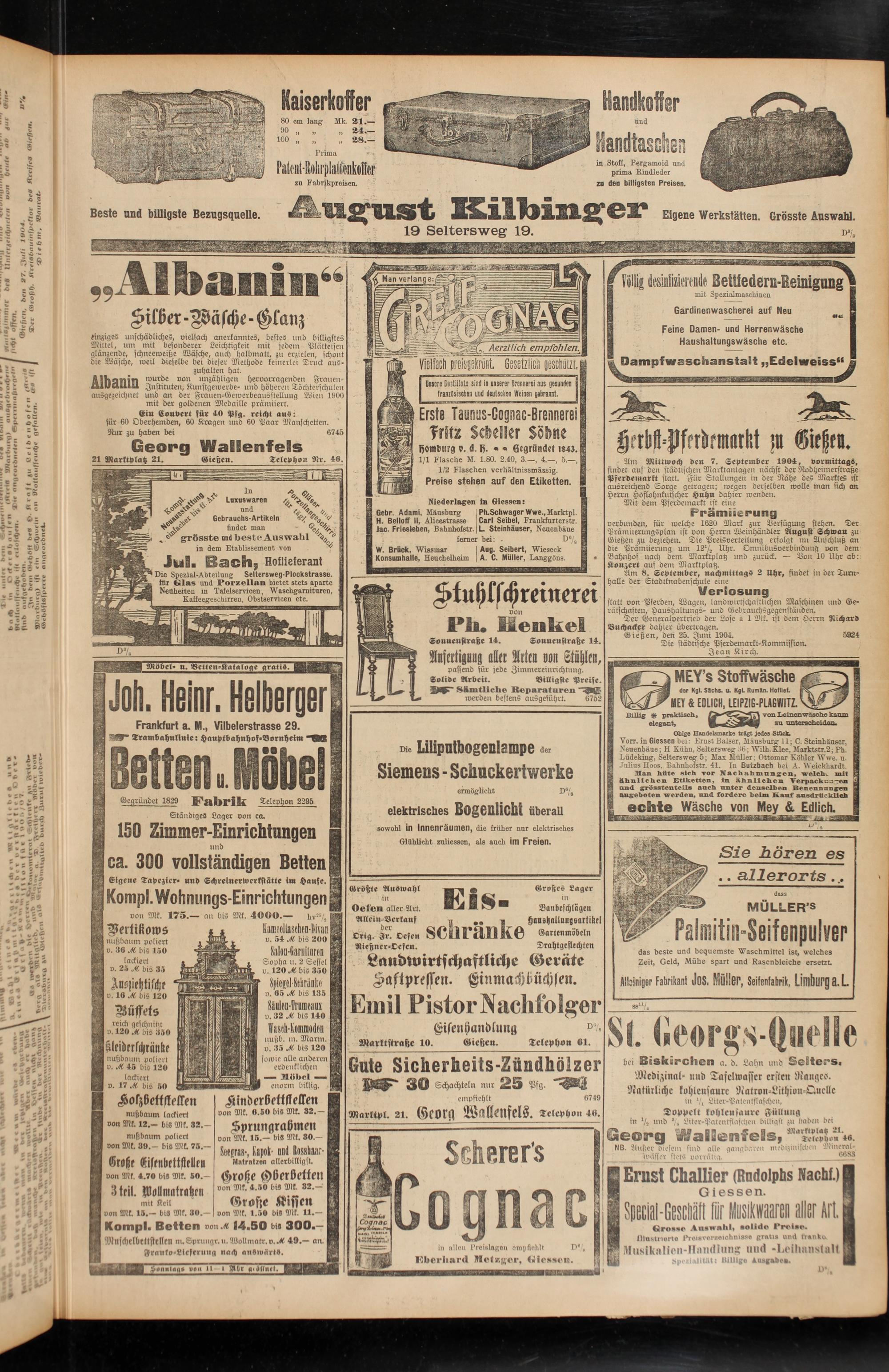 A ugust Kilbinger Eigene Werkstätten. Grösste Auswahl. 19 Seltersweg 19. d*/.