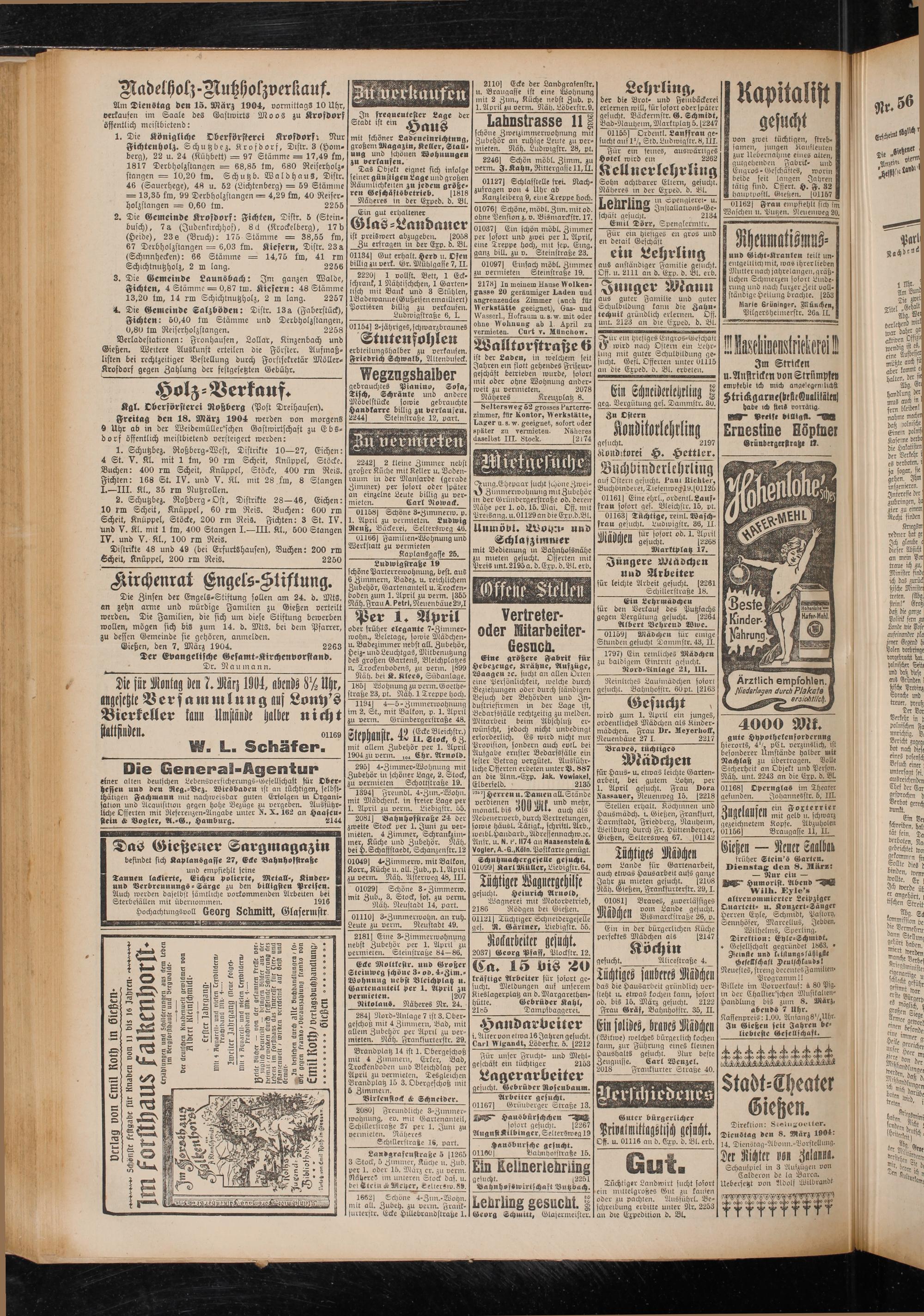 Wagnerei mit Motorbetrieb, 2186 Rödgen bei Gießen. 01121] Tüchtiger Schneidergejelle ges. R. Gärtner, Liebigstr. 55.