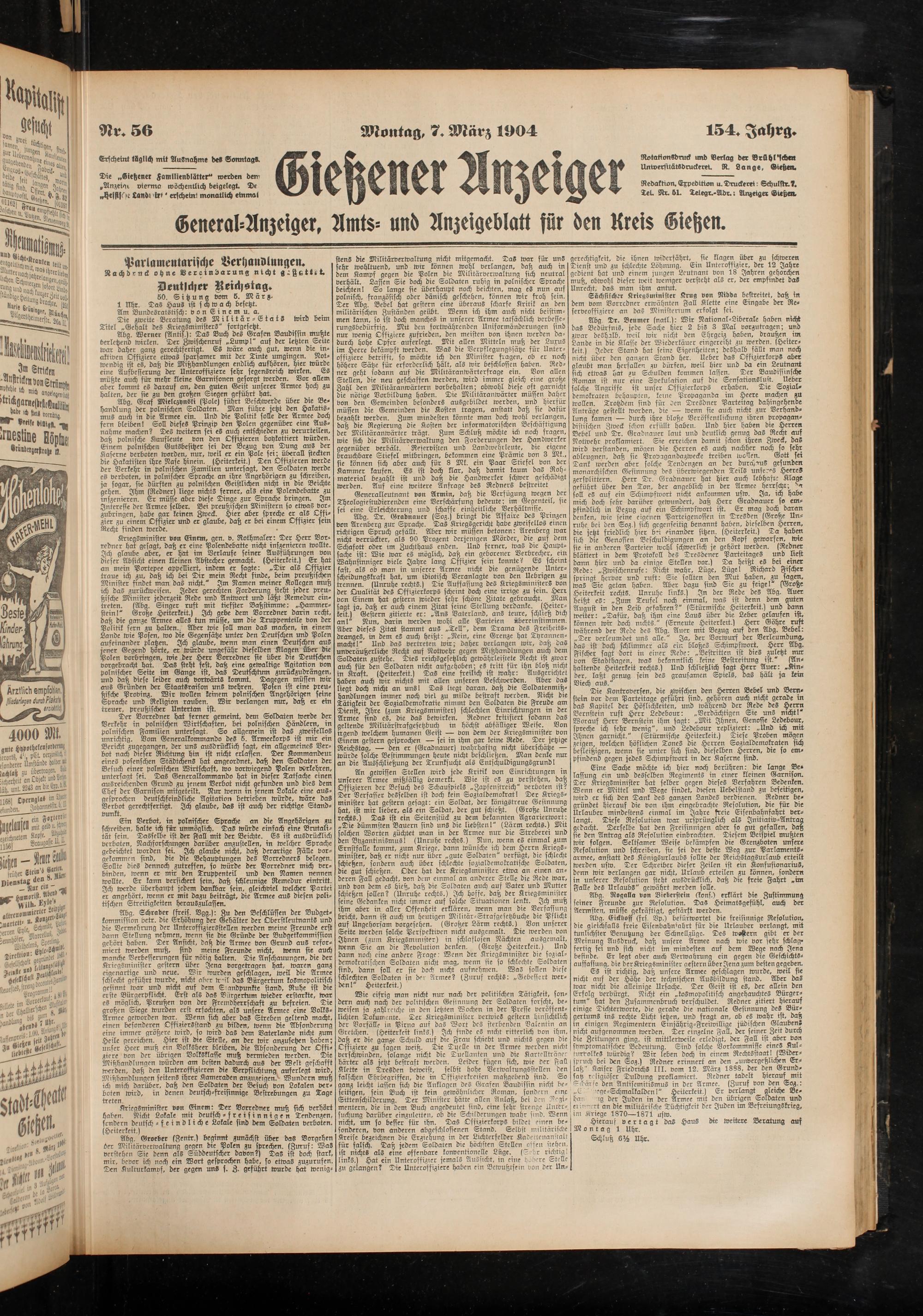 General-Anzeiger, Amts- und Anzeigeblatt für den Kreis Giehen.