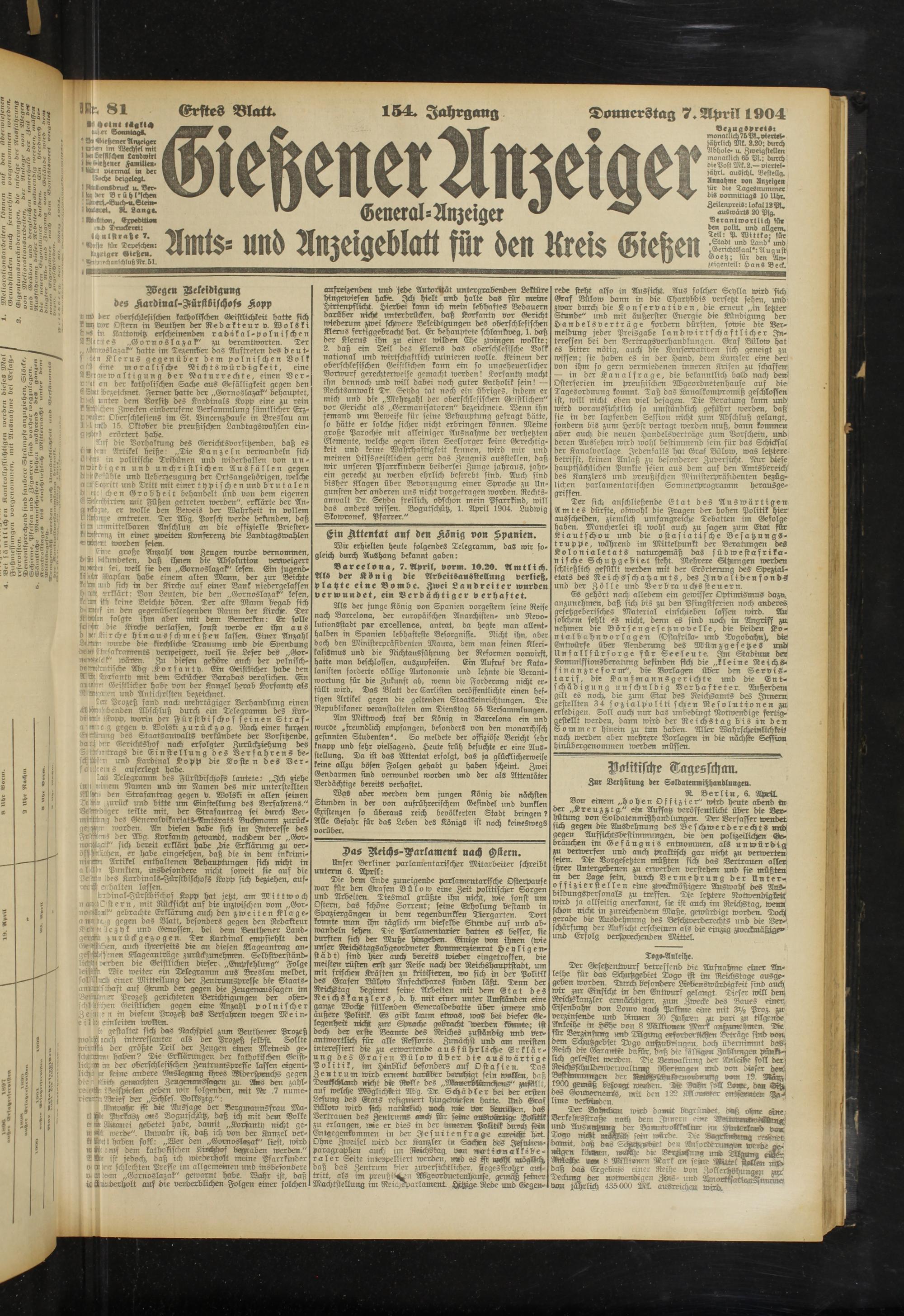Donnerstag 7. April 1904