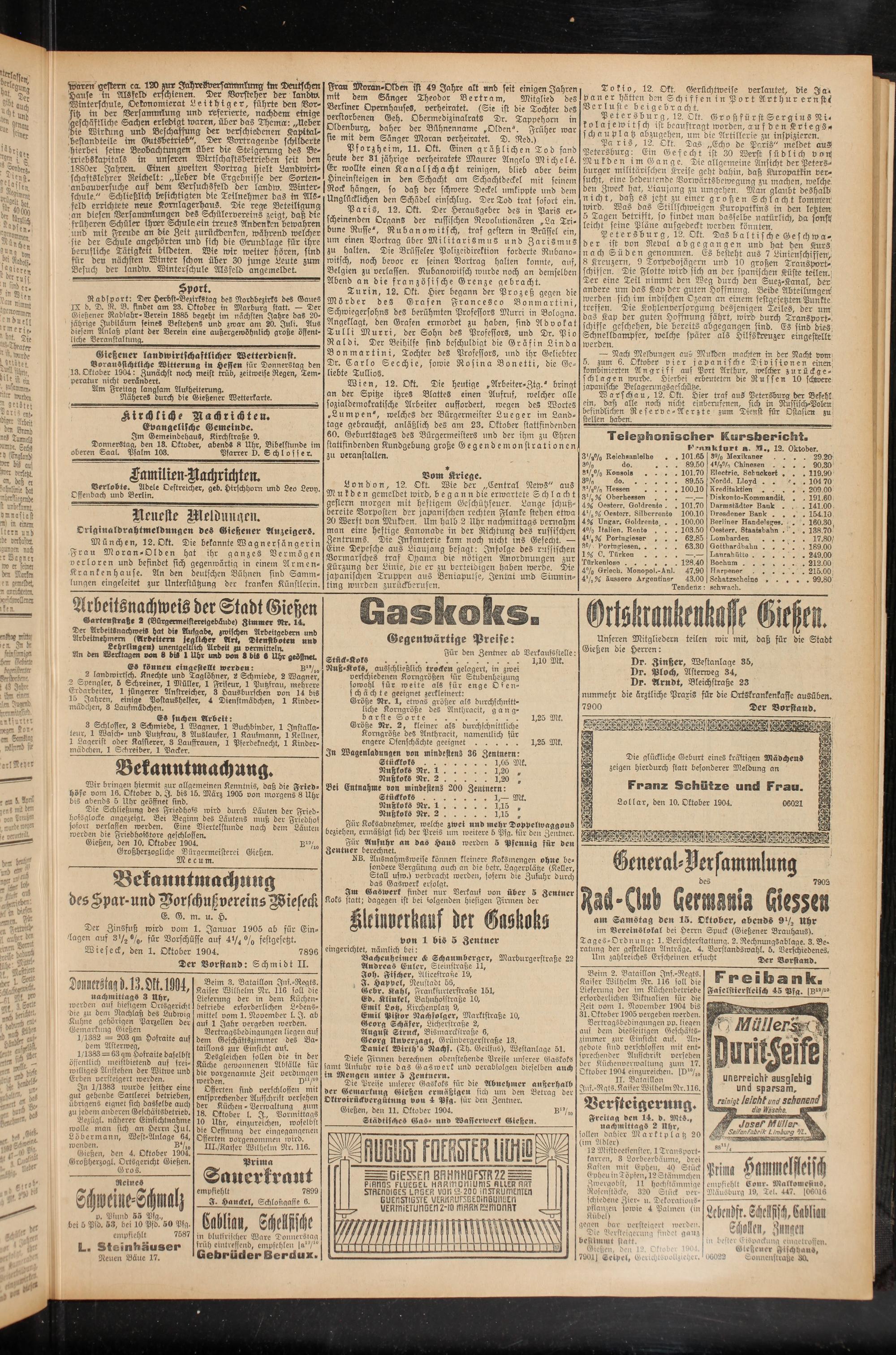 Gießen, den 4. Oktober 1904. Großherzogl. Ortsgericht Gießen. __________Gros.__________