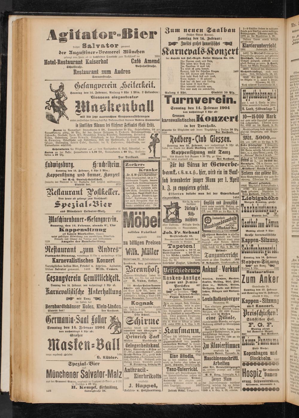 Sonntag den 14. Februar 1904 von nachmittags 4 Uhr ab: karnevalistischesStOilÄ^rt in der Turnhalle.