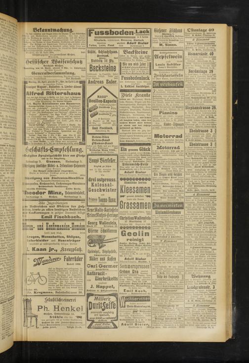 Backsteine liefert in kleinen und großen Quantitäten Wllh. Rinn V111., Heuchelheim bei Gießen. 3443