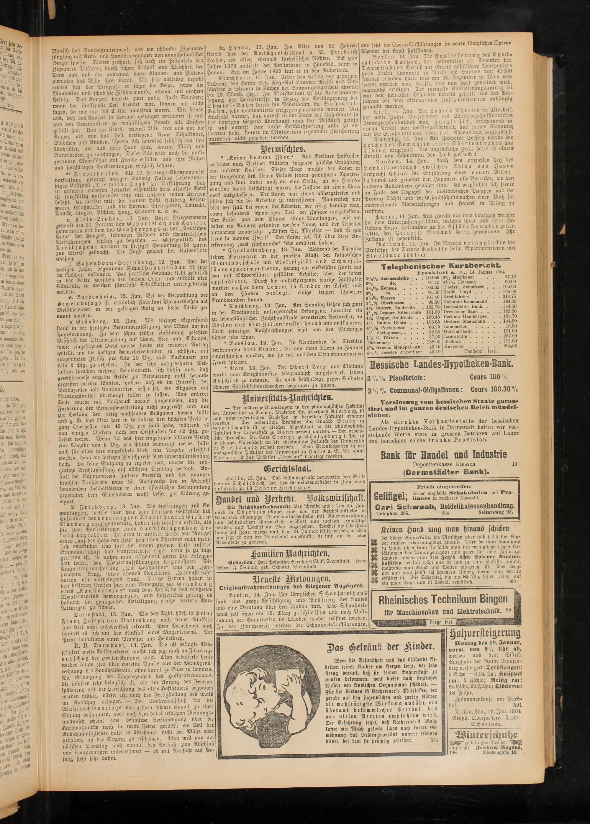 Darmstadt, 13. Jan. Wie das Tgbl. hört, ist Prinz Franz Joseph von Battenberg nach seiner Rückkehr aus Kiel nicht unbedenklich erkrankt. Dem Vernehmen nach handelt es sich um den Rückfall eines Magenleidens. Der Prinz konsultierte einen Professor aus Heidelberg.