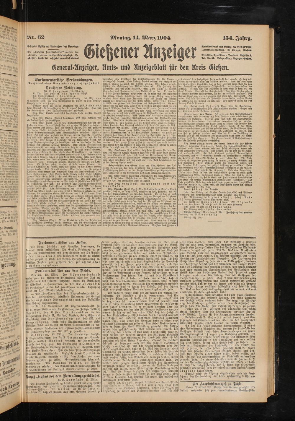 Die ^Gießener Zamilienblätter" werden berr ,Anzei-ic otermo wöchentlich beigelegt. De «hesstj(> Land' tr» * erschein! monatlich einmal