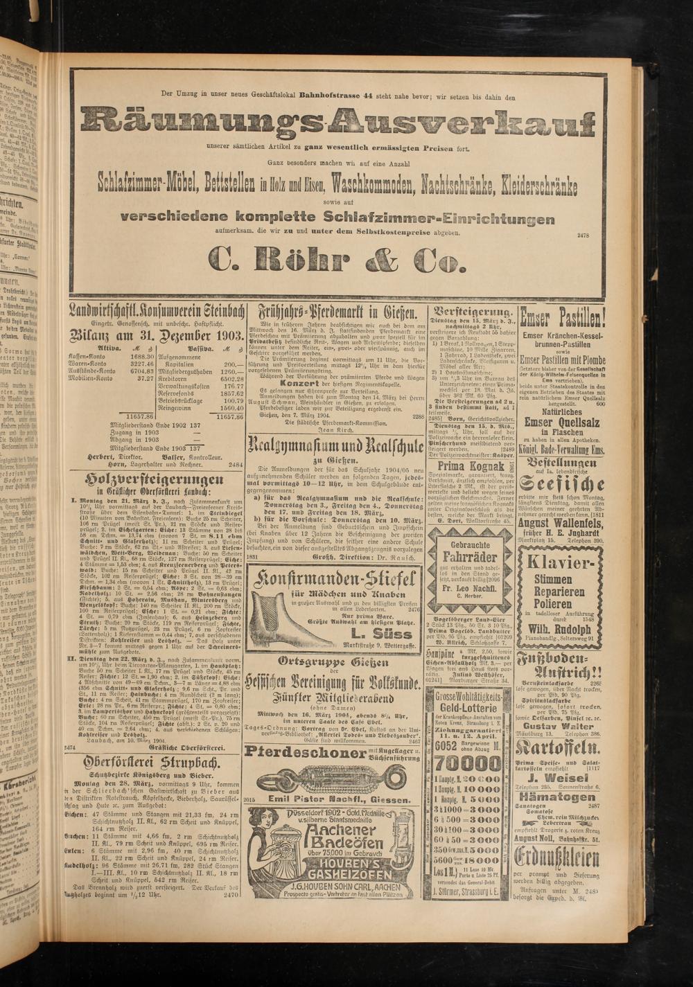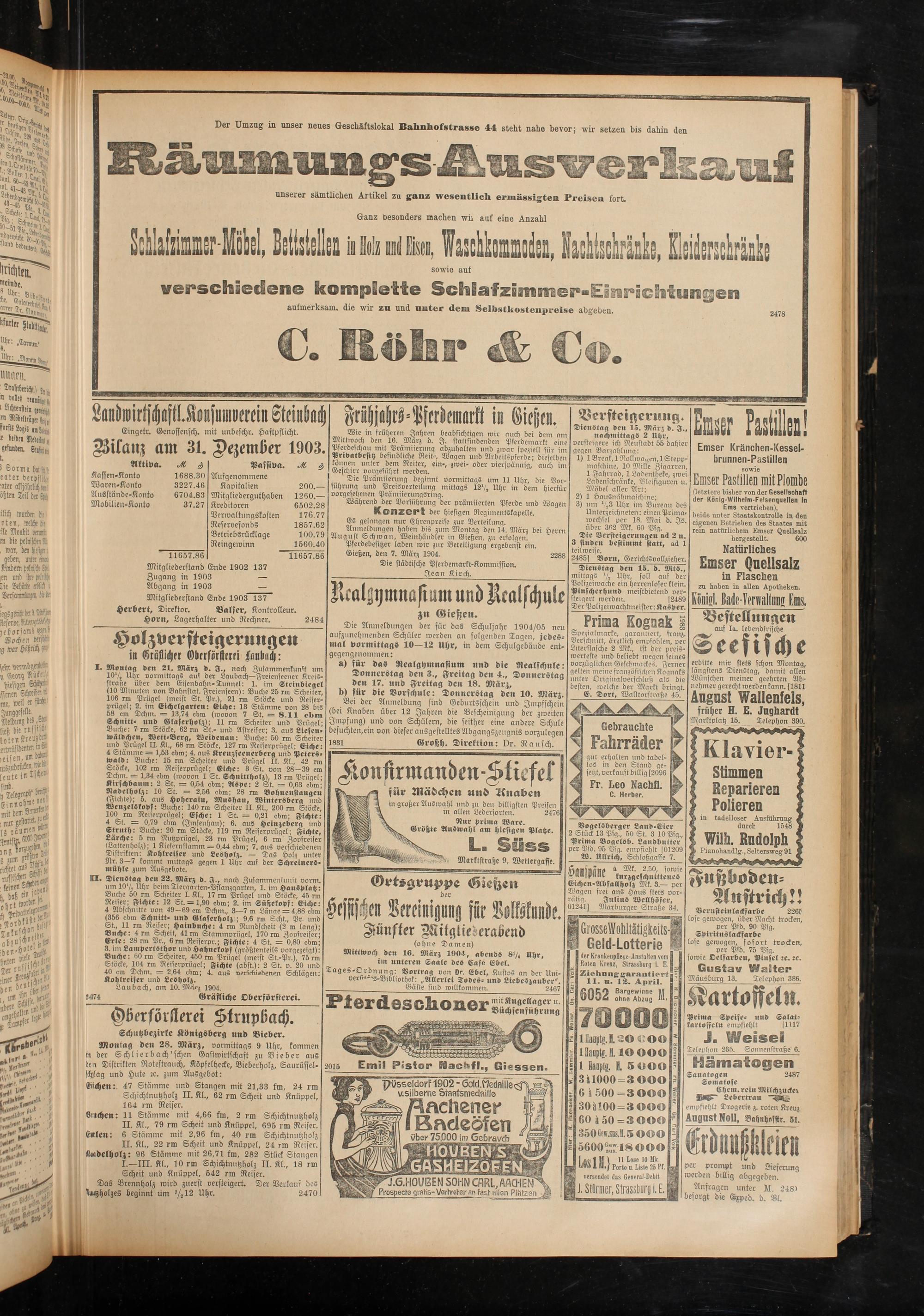 Pferdebesitzer laden wir zur Beteiligung ergebenst ein. Gießen, den 7. März 1904.