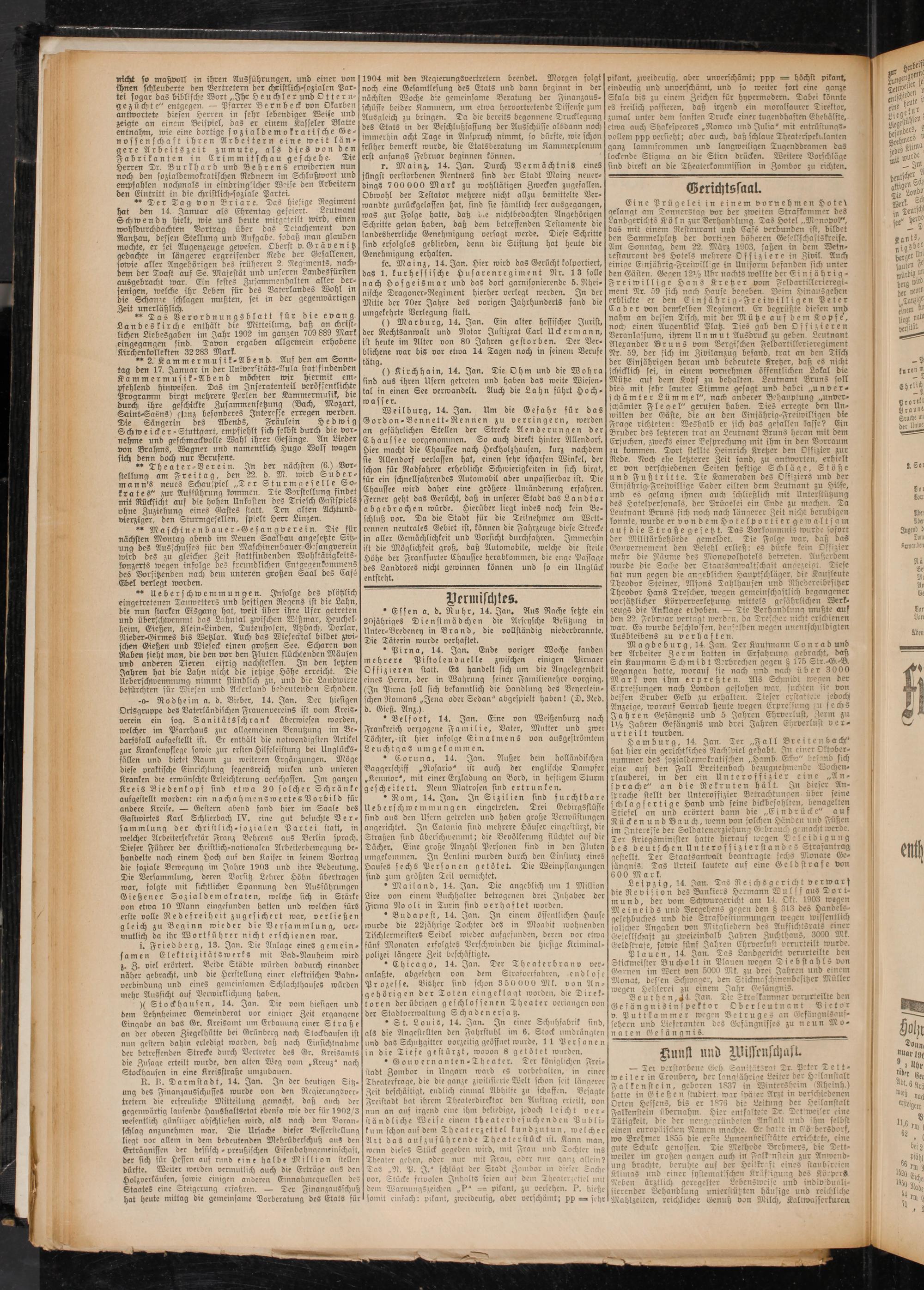 1904 mit den Regierungsvertretern beendet. Morgen folgt noch eine Gesamtlesung des Etats und dann beginnt in der nächsten Woche die gemeinsame Beratung der Finanzausschüsse beider Kammern, um etwa hervortretende Dissense zum Ausgleich zu bringen. Da die bereits begonnene Drucklegung des Etats in der Beschlußfassung der Ausschüße alsdann noch immerhin acht Tage in Anspruch nimmt, so dürfte, wie schon 'rüher bemerkt wurde, die Etatsberatung im Kammerplenum erst anfangs Februar beginnen können.