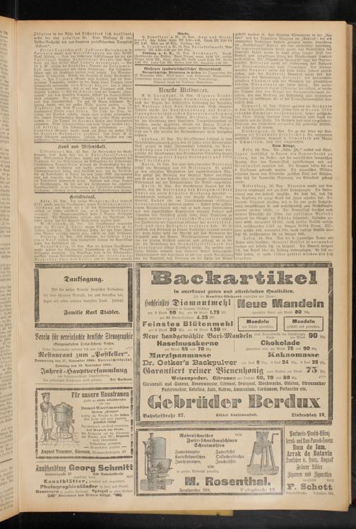Köln, 15 Nov. Der hiesige Metzger meist er Heinrich Esse wurde von der Strafkammer wegen Nahrungsmittelfälschung auf Grund des § 12 des Nahrungsmittelgesetzes, obschon er bisher unbestraft war, zu 3 Tagen Gefängnis verurteilt. Die Staatsanwaltschaft hatte 3 Monate Gefängnis beantragt Die Verurteilung erfolgte, weil der Angeklagte den hohen Zusatz von 0,7 Prozent Präservesalz gegeben hatte.