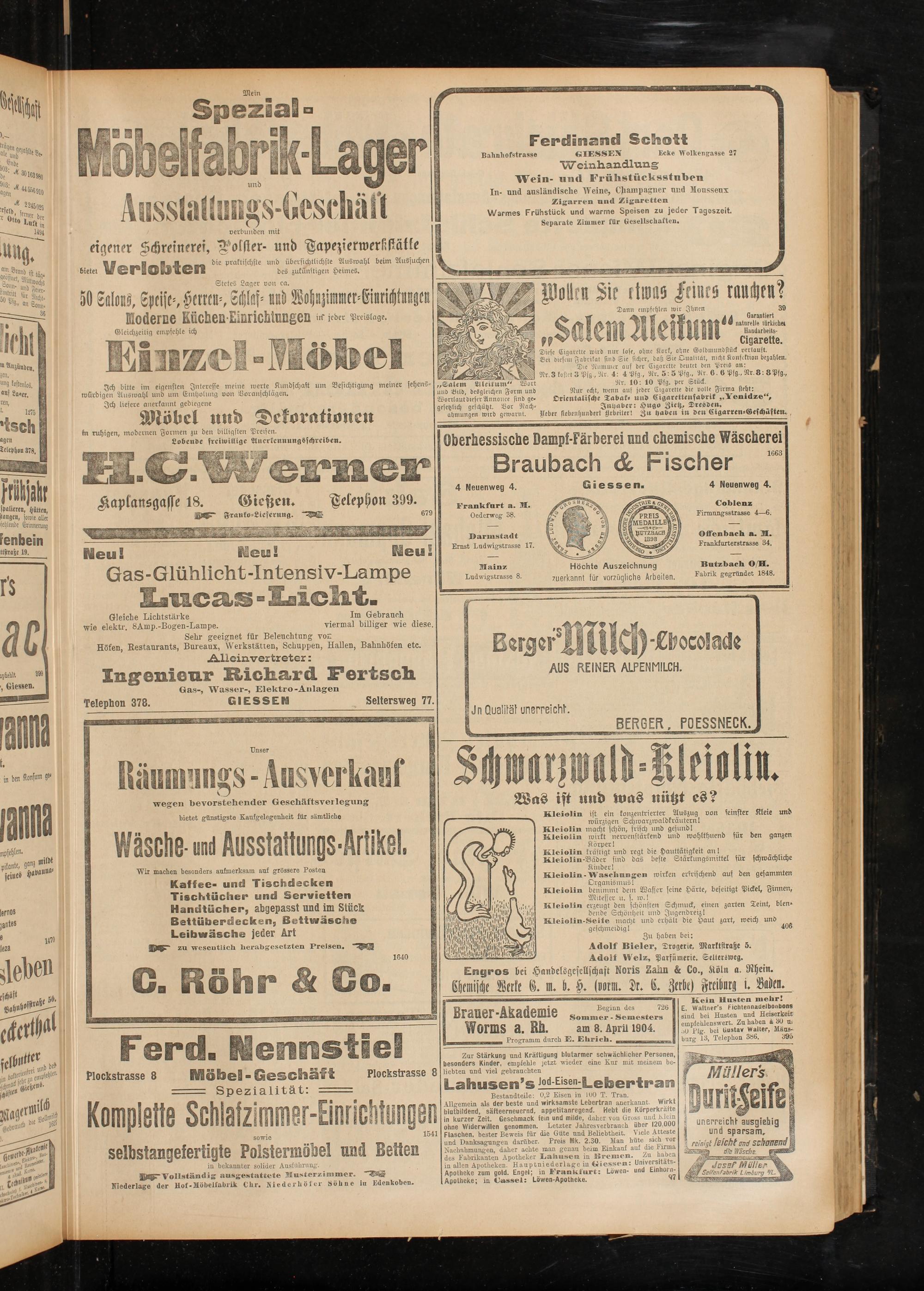 Allgemein als der beste und wirksamste Lebertran anerkannt. Wirkt blutbildend, säfteerneuernd, appetitanregend. Hebt die Körperkräfte in kurzer Zeit. Geschmack fein und milde, daher von Gross und Klein ohne Widerwillen genommen. Letzter Jahresverbrauch über 120,000 Flaschen, bester Beweis für die Güte und Beliebtheit. Viele Atteste und Danksagungen darüber. Preis Mk. 2.30. Man hüte sich vor Nachahmungen, daher achte man genau beim Einkauf auf die Firma des Fabrikanten Apotheker Lahusen in Bremen. Zu haben in allen Apotheken. Hauptniederlage in Giessen: Un‘ver.si^ts' Apotheke zum gold. Engel; in Frank.»ort: Löwen- und tmnoin- ,Apotheke; in Cassel: Löwen-Apotheke.