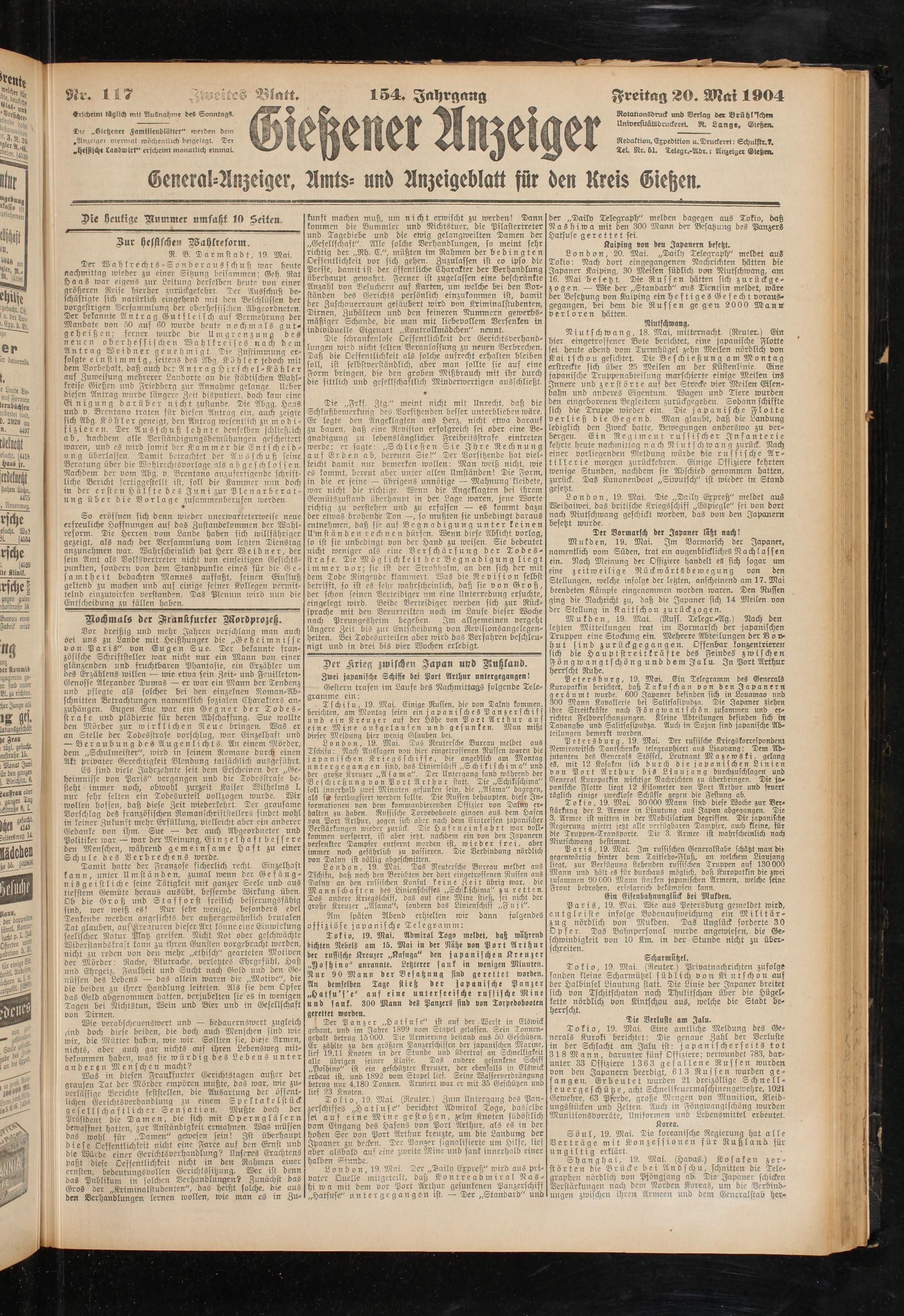 XeL Rr. 5L Telegr.-Adr. r Anzeiger Gießen.