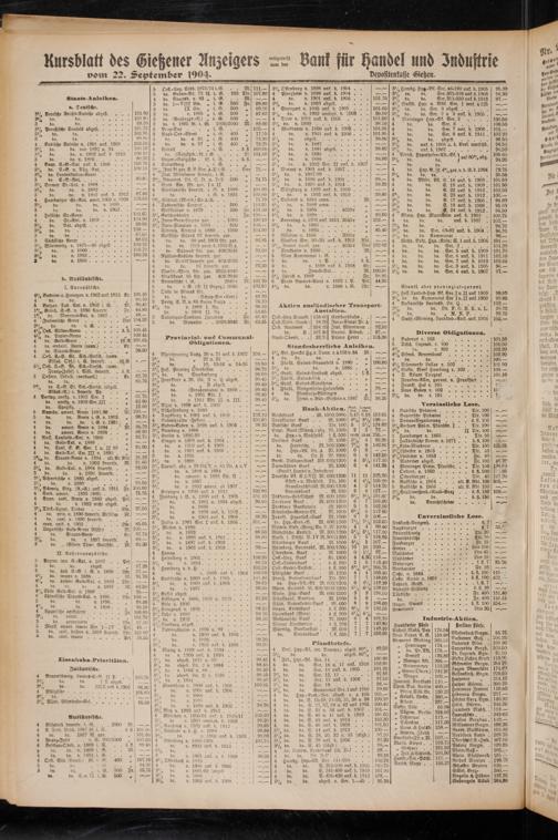 Kursblatt des Gießener Anzeigers ä? Bank für handel und Industrie t>em 22. Septeinbev Depositenkasse Eiesien.