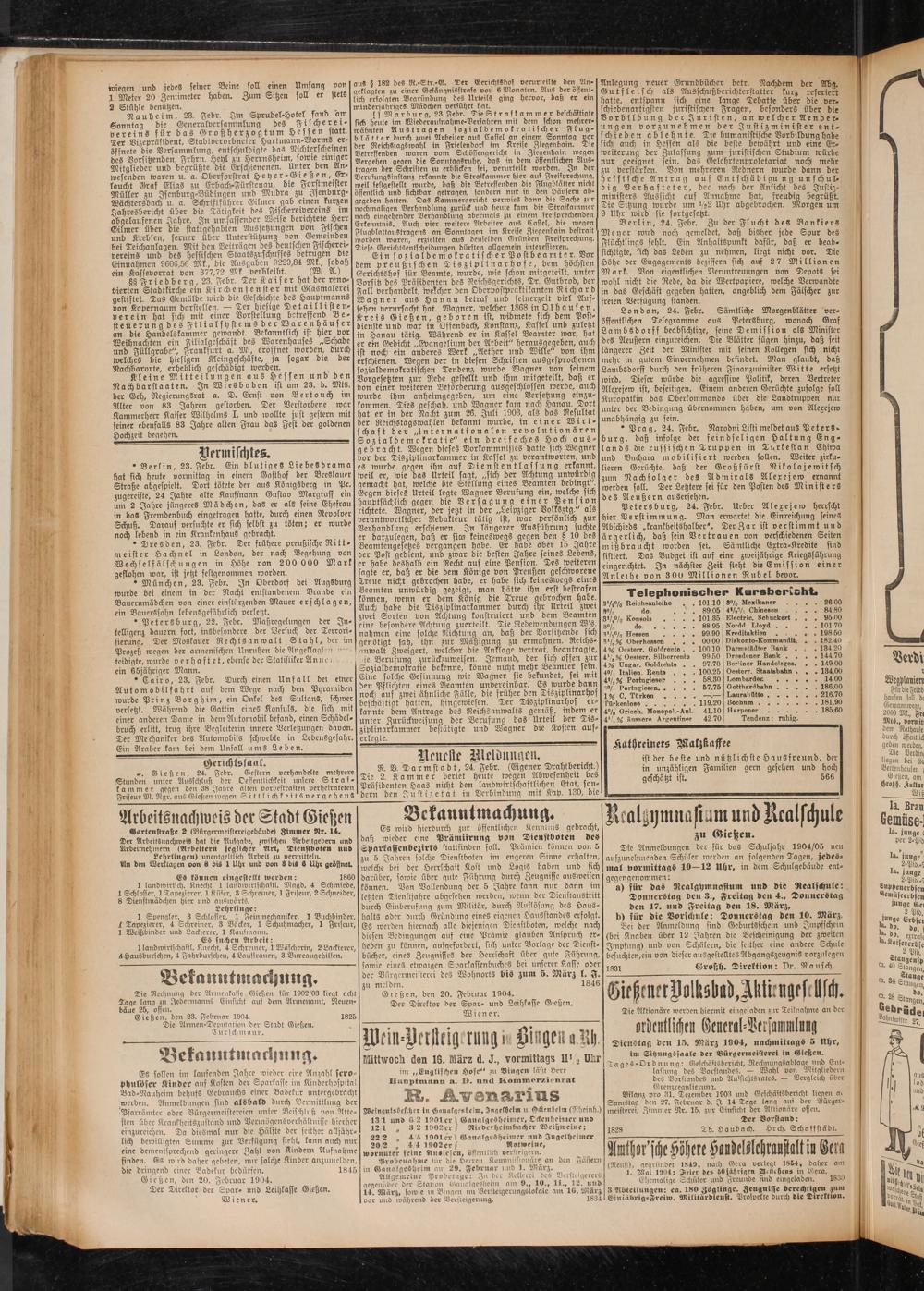 Dienstag den 15. März 1904, nachmittags 5 Uhr, im SitznngSsaate der Bürgermeisterei in Gießen.
