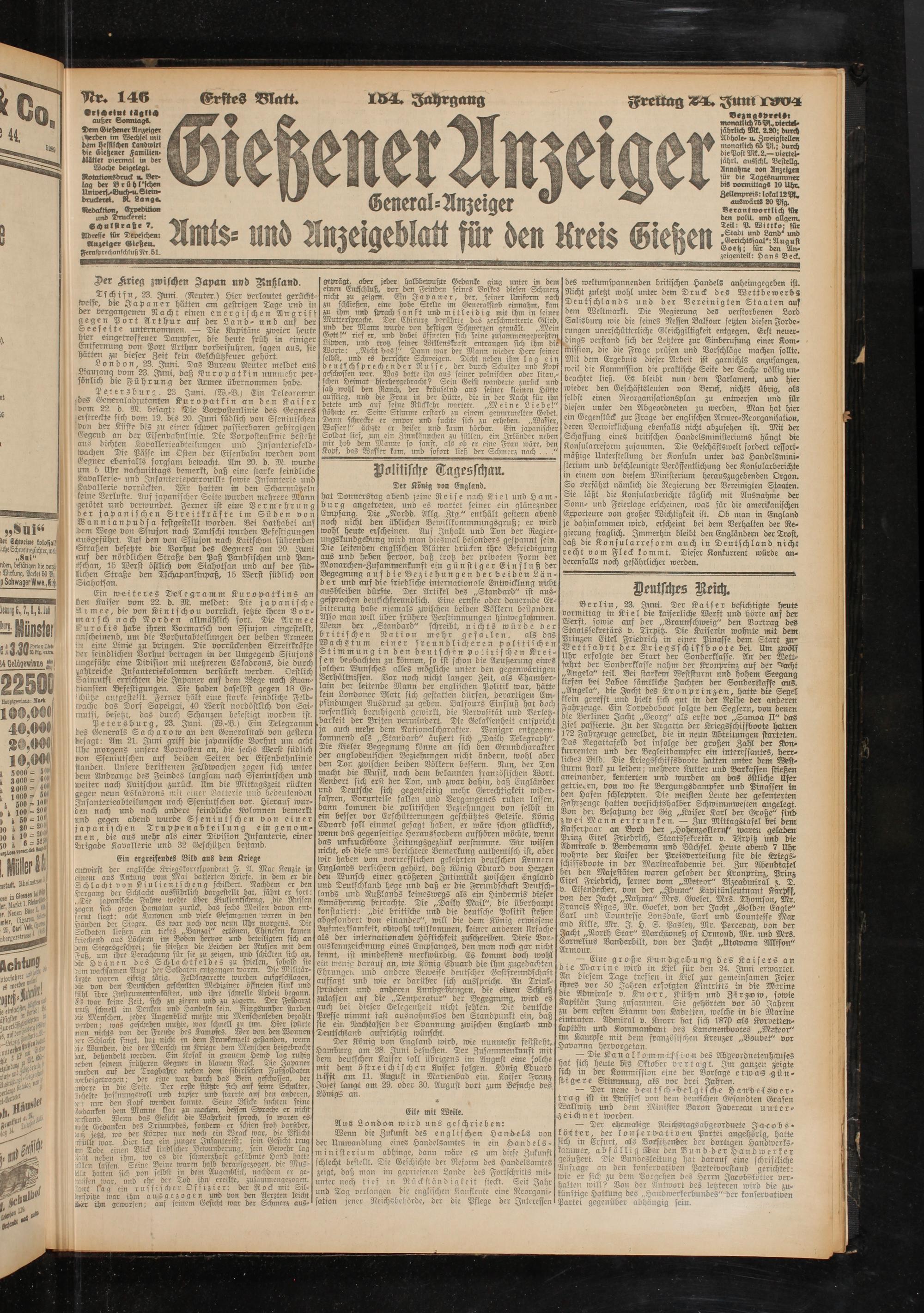 Adresse für Depeschen: Anzeiger Gießen.