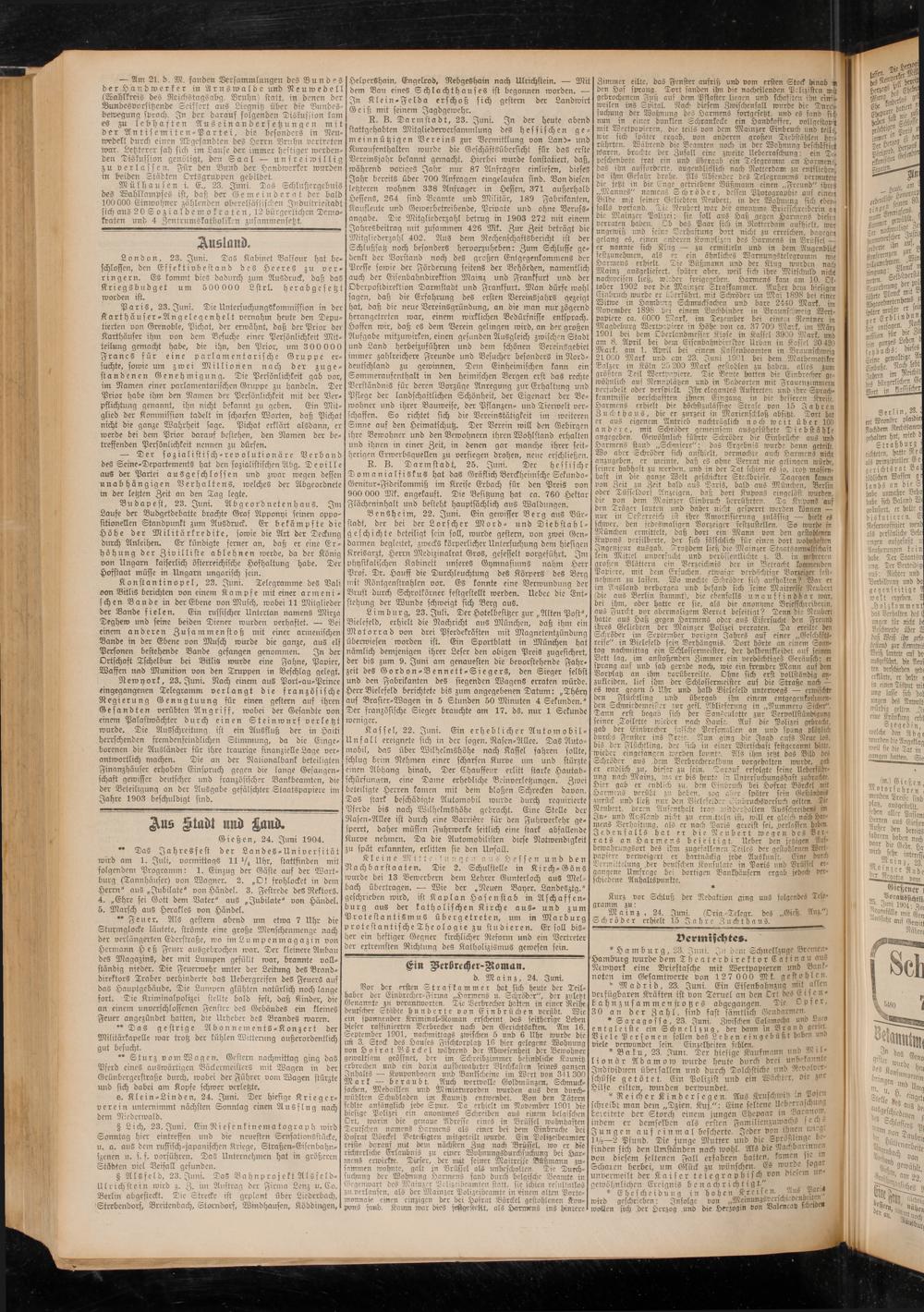 Bensheim, 22. Juni. Ein gewißer Berg ans Bürstadt, der bei der Lorscher Mord- und Diebstahlgeschichte beteiligt sein soll, wurde gestern, von zwei Gendarmen begleitet, zwecks körperlicher Untersuchung dem hiesigen Kreisarzt, Herrn Medizinalrat Gros, gefeßelt vorgeführt. Im physikalischen Kabinett unseres Gymnasiums nahm Herr Prof. Dr. Hauff die Durchleuchtung des Körpers des Berg mit Röntgenstrahlen vor. Es konnte eine Verwundung der Brust durch Schrotkörner festgestellt werden. Ucbec die Entstehung der Wunde schweigt sich Berg aus.