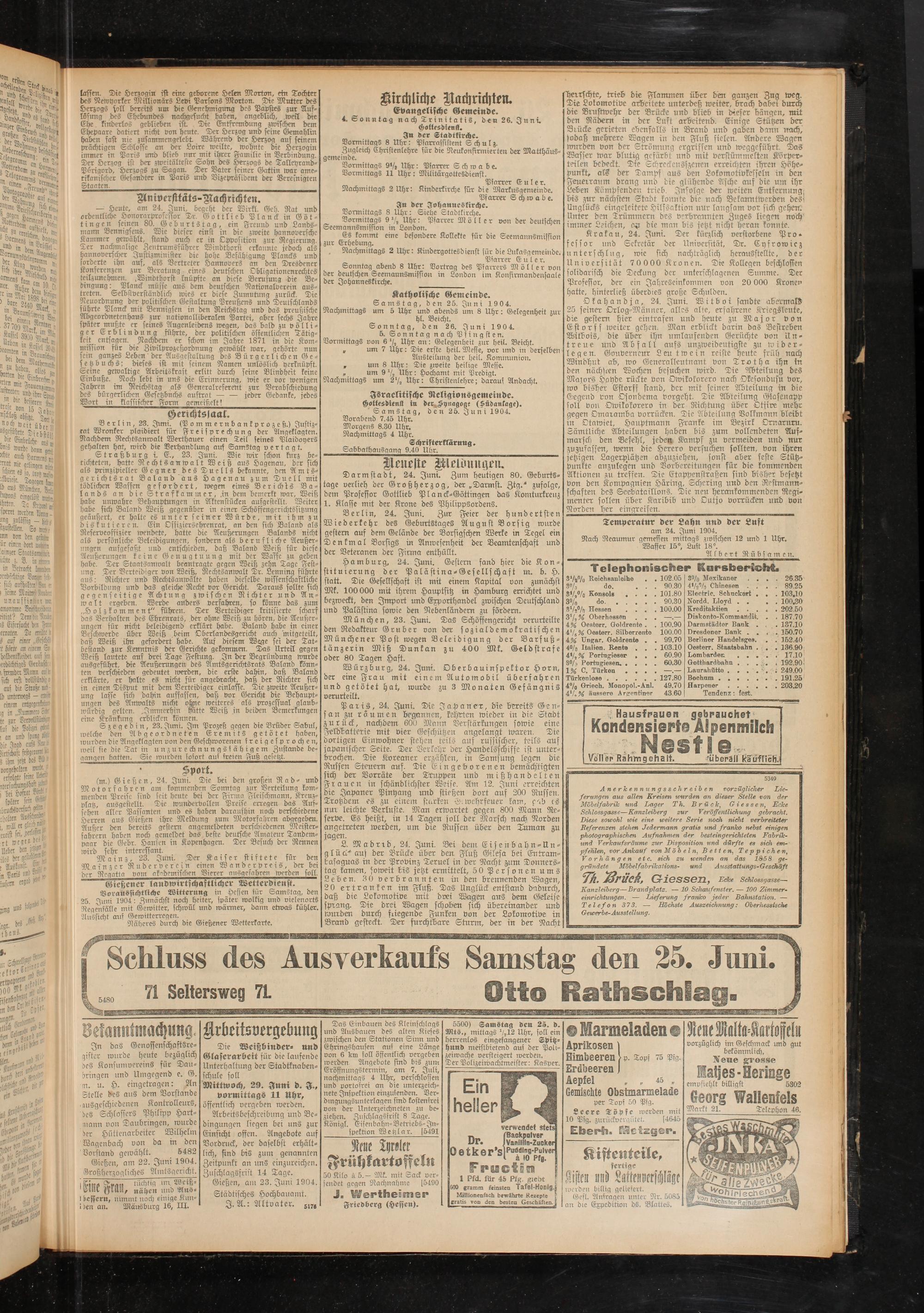 Gießen, am 22. Juni 1904. Großherzogliches Amtsgericht, i fGino Lrau tüchtig im. Wetß- 'Ltiik yruil, nähen uni) Aus-. i bessern, nimmt noch < inige Kun- i »en an. Mcnrsburg 16, III.